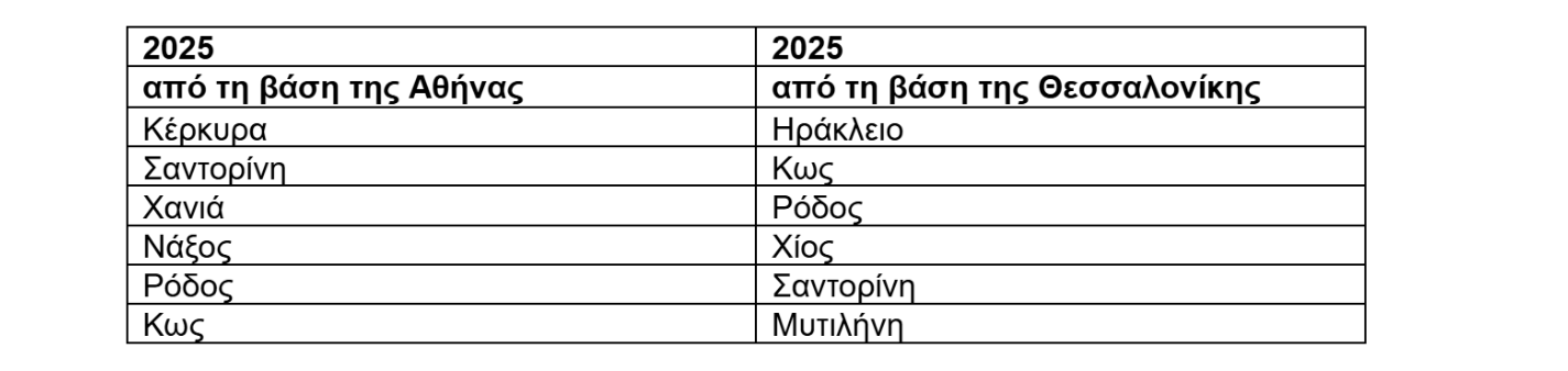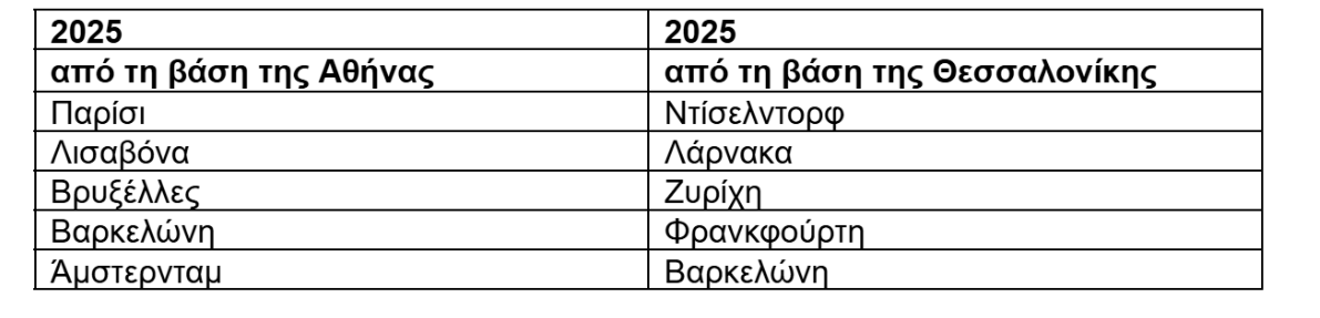 Οι top προορισμοί εσωτερικού και εξωτερικού από τις δυο μεγαλύτερες βάσεις της Αθήνας και της Θεσσαλονίκης