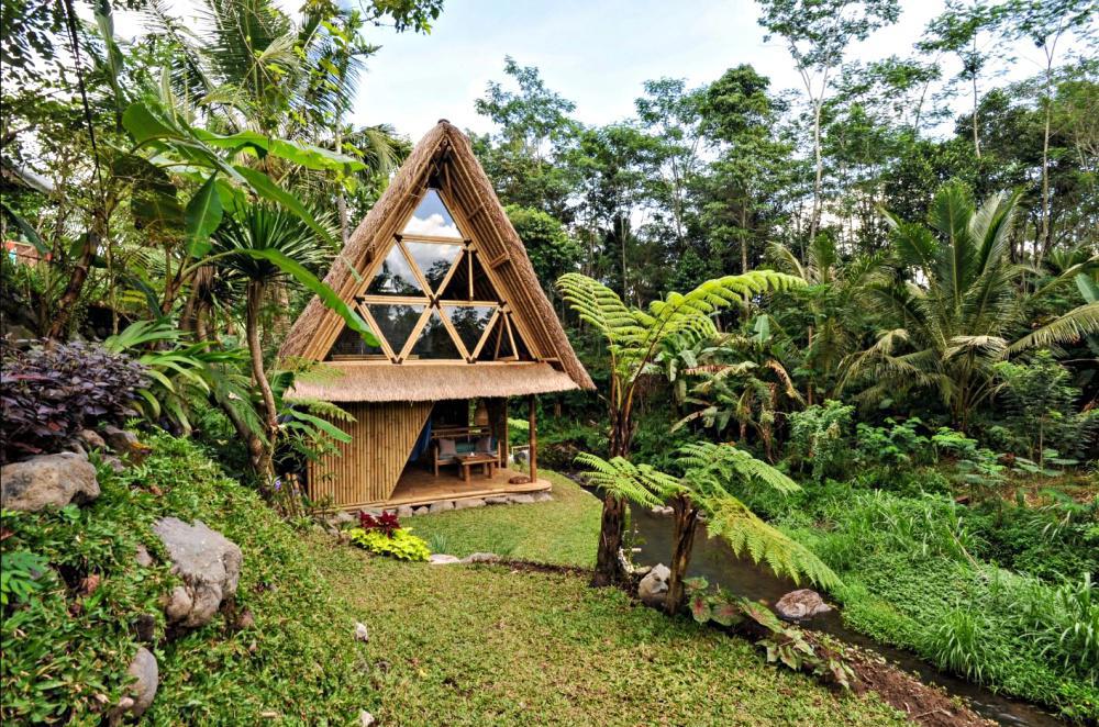 Το οικολογικό σπίτι από μπαμπού στην ινδονησιακή πόλη Σελάτ, μπορεί να φιλοξενήσει μέχρι και 4 επισκέπτες, καθώς διαθέτει 2 κρεβάτια, ένα μπάνιο και ένα WC.