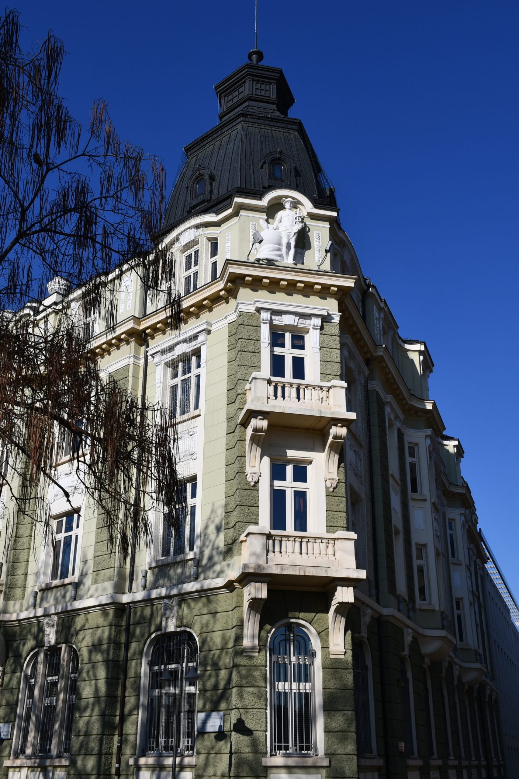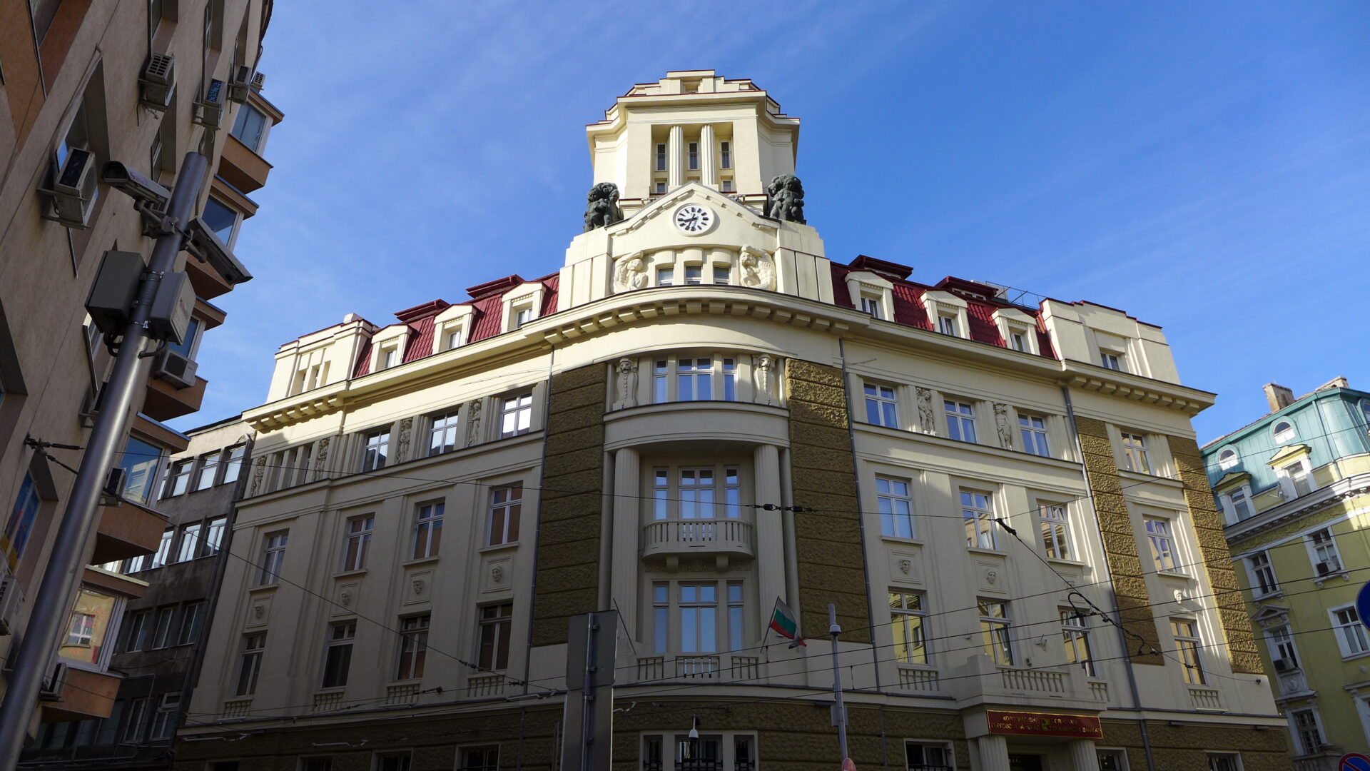 Το κτήριο της Κεντρικής Διοίκησης της Τράπεζας DSK στην οδό “Μοσκόβσκα” 19, στο κέντρο της Σόφιας είναι ένα αριστούργημα της “Secession” στη βουλγαρική αρχιτεκτονική. Σχεδιάστηκε το 1912-1914 για τις ανάγκες της τότε Τράπεζας της Σόφιας από τους μεγάλους Βούλγαρους αρχιτέκτονες Γκεόργκι Φίνγκοφ (1874-1944), Ντίμο Νίτσεφ (1876-1952) και Νίκολα Γιουρούκοφ (1880-1923) και κατασκευάστηκε το 1920. Στον τρούλο του κτηρίου υπάρχει ένα άγαλμα του Ερμή, θεού του εμπορίου, των ανταλλαγών και των επικοινωνιών, προστάτη και φύλακα της τράπεζας, στα παράθυρα απεικονίζεται επίσης η Γοργόνα Μέδουσα, ενώ μεγαλειώδεις αετοί φρουρούν την είσοδο του κτηρίου πάνω από την κύρια είσοδο.