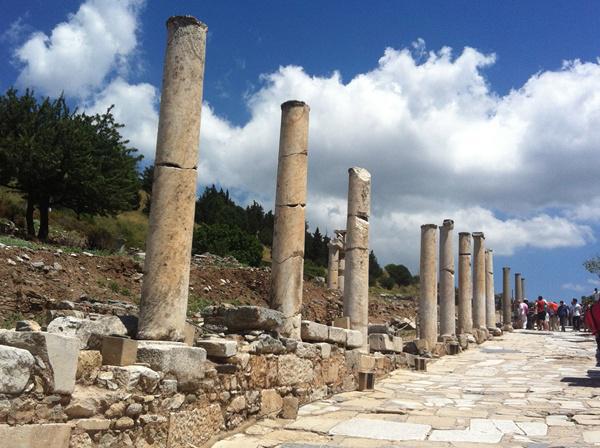 Σε απόσταση 65 χμ από τη Σμύρνη βρίσκεται η Έφεσος. Στέκει εκεί από τον 10 αι. π.χ και παρά το γεγονός ότι έχει ανακαλυφθεί μόνο το 15% της αρχαίας πόλης είναι σήμερα η πόλη με τα περισσότερα ρωμαϊκα μνημεία της Αν.Μεσογείου. Ήταν ένα από τα σημαντικότερα οικονομικά και πολιτιστικά κέντρα της Μεσογείου μέχρι τον καταστροφικό σεισμό το 614μ.χ., που την οδήγησε στην αρχή της παρακμής της, όταν υποχώρησε η θάλασσα 5 χιλ από την πόλη με συνέπεια να χάσει το λιμάνι της στη Μεσόγειο. Ελάχιστα σημάδια από τον αρχαίο ελληνικό πολιτισμό της έχουν απομείνει με κυριότερο τον Ναό της Αρτέμιδος, ένα από τα 7 θαυματα του αρχαίου κόσμου αλλά και η εντυπωσιακή βιβλιοθήκη του Κέλσιου