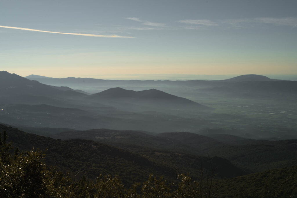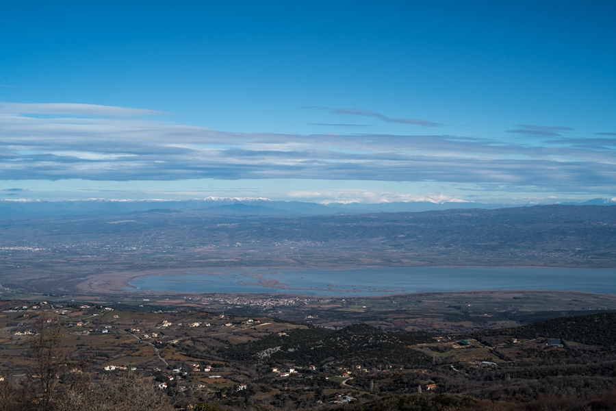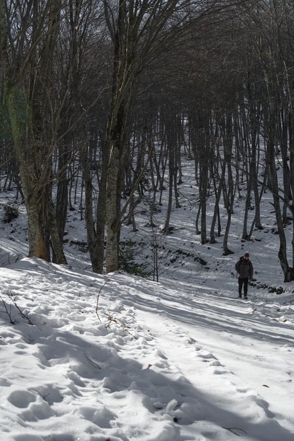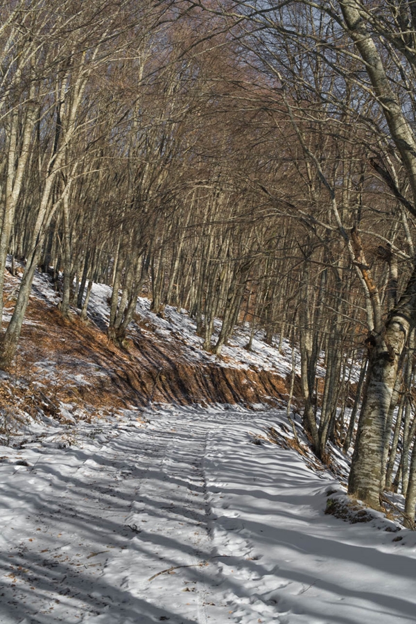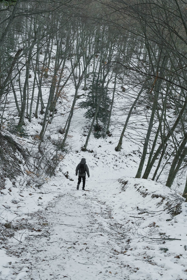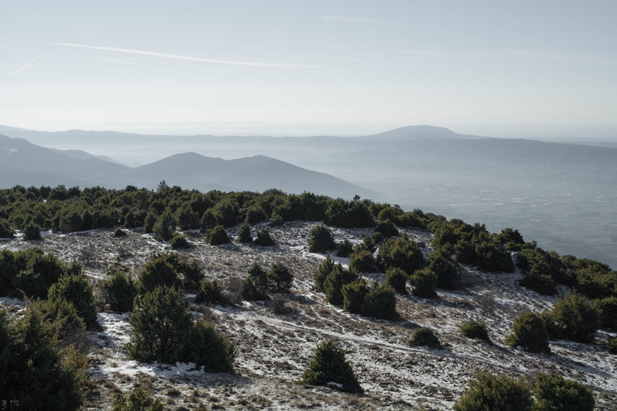 Το ραντεβού μου με τον Π. ήταν στις 08:00 στις κεραίες. Η θερμοκρασία ήταν στους -2,5 βαθμούς Κελσίου. Επιλέξαμε να ξεκινήσουμε την κυκλική διαδρομή από ανατολικά (από την άσφαλτο προς το φυλάκιο της Αεροπορίας). Με αυτό τον τρόπο θα μπορούσαμε να γευτούμε τις πρώτες ηλιαχτίδες του ήλιου, καθώς η σημερινή ημέρα, επέβαλε μια ηλιοθεραπεία. Αφού μπήκαμε στο κωνοφόρο κομμάτι της διαδρομής, αμέσως δεξιά πριν το φυλάκιο, είδαμε πως οι αέριες μάζες και οι καταιγίδες, ήταν πολύ έντονες το τελευταίο διάστημα επάνω στο βουνό, αφού πεσμένοι κορμοί δέντρων, υπάρχουν διάσπαρτοι σε εκείνο το σημείο της διαδρομής. Αφού φτάσαμε στην μεγάλη στροφή, ακριβώς κάτω από το ραντάρ, απολαύσαμε τη θέα προς τον Όλυμπο και τον Θερμαϊκό.