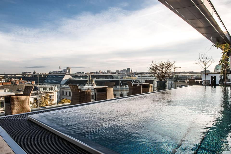Έχοντας τέλεια τοποθεσία στην καρδιά της πόλης, η πισίνα στον τελευταίο όροφο του Grand Etage προσφέρει εκπληκτική θέα στη Βιέννη, τόσο την ημέρα όσο και τη νύχτα.