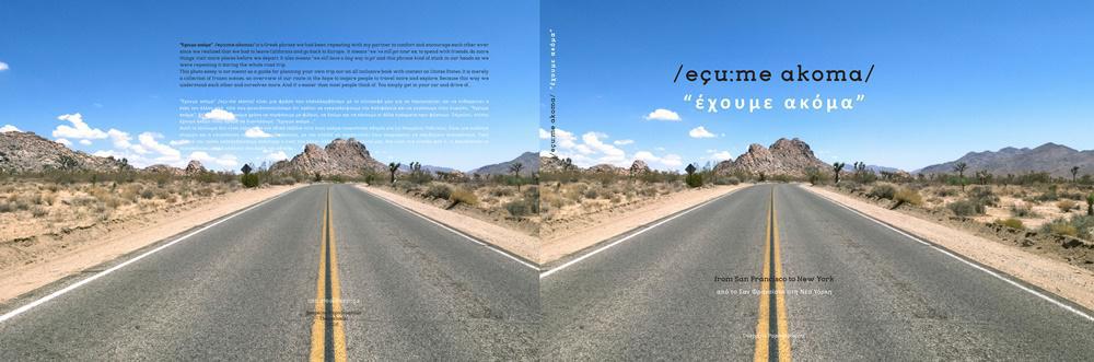 Δεν είναι τυχαία η επιλογή του ονόματος, καθώς το «Έχουμε Ακόμα» είναι η φράση – κλειδί της οδικής τους περιπέτειας στην Αμερική. Δυο κωδικές λέξεις που επαναλάμβαναν συνέχεια, κάτι σύντομο για να τους θυμίζει τις ώρες οδήγησης που απέμεναν και ταυτόχρονα τις τόσες ομορφιές που θα απλώνονταν μπροστά τους, έξω από το παράθυρό τους. «Έχουμε ακόμα” / eçu:me akoma / = we still have time, we still have a long way to go!».