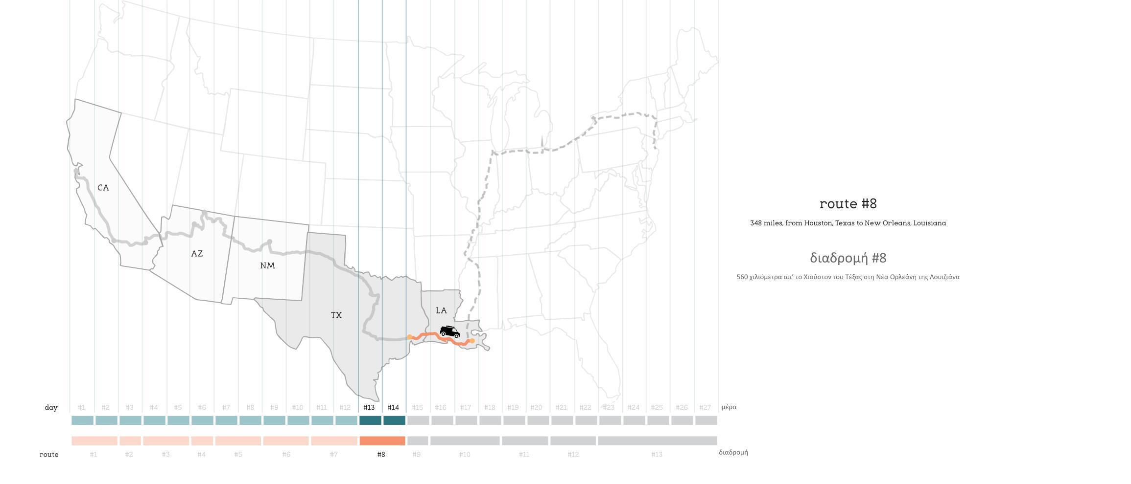 Πριν από δύο χρόνια, τον Αύγουστο του 2016, η Δέσποινα Παπαδοπούλου που συστήνεται ως αρχιτέκτονας, ερασιτέχνης φωτογράφος και επαγγελματίας νομάς, πήρε την απόφαση να διασχίσει μαζί με τον σύντροφό της τις ΗΠΑ, οδηγώντας ένα RV. Το ταξίδι αυτό σε αριθμούς συνοψίζεται ως εξής: 5.900 μίλια, 23 μέρες, 15 Πολιτείες από το Σαν Φρανσίσκο ως τη Νέα Υόρκη.