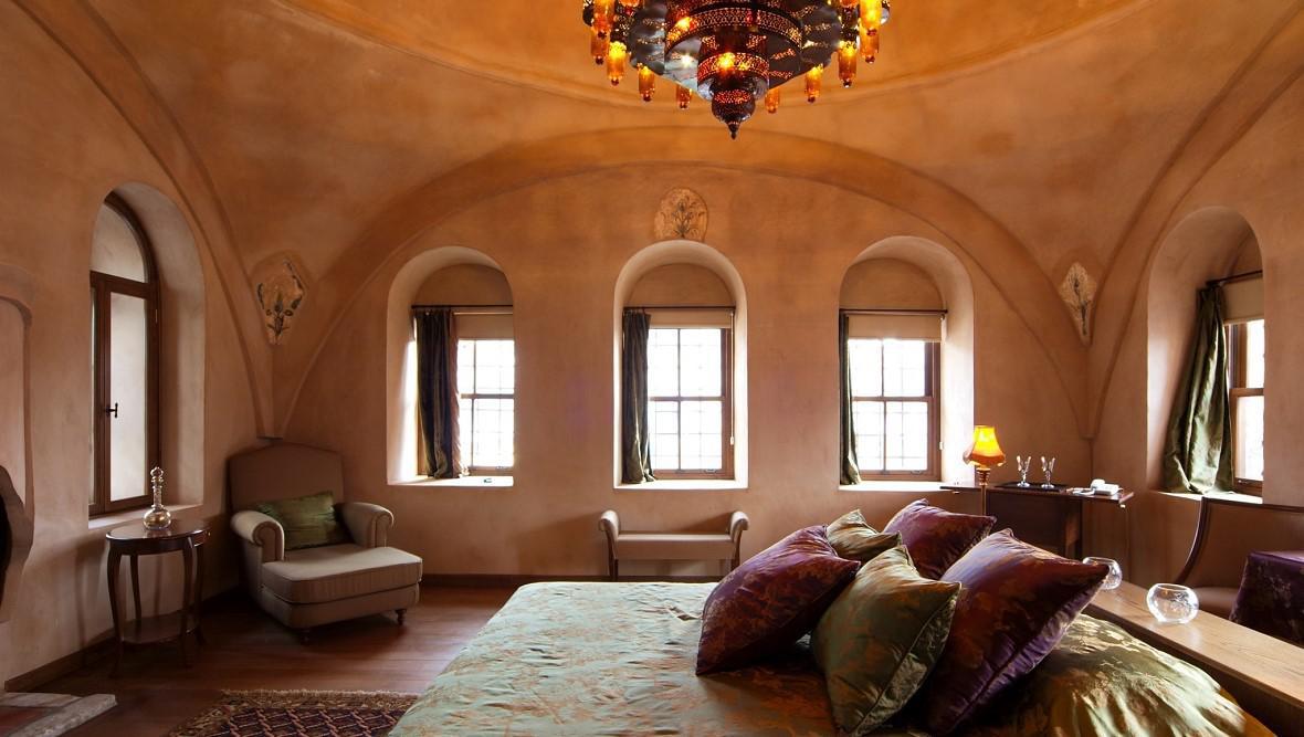 Η λιτή πολυτέλεια των κεντημένων λινών στα κρεβάτια και τις κουρτίνες με το όνομα του να δεσπόζει παντού, φτιαγμένο με το χέρι, οι μοναδικές αντίκες στα δωμάτια και τα σπάνια υφάσματα, τα ξύλινα πατώματα που περάστηκαν με εσάνς πορτοκαλιού για να μπορέσουν οι καστανιές να αποδώσουν καλύτερα τις στανίνες τους, τα εκπληκτικά μπάνια με τα σπάνια μάρμαρα να δημιουργούν υπέροχες γούρνες μπροστά σε παράθυρα που παίζουν το ρόλο της μπανιέρας, στην οποία βυθίζεσαι αφήνοντας απλά το κρεβάτι σου, οι σπάνιοι χάλκινοι νεροχύτες, ο απίστευτος διάκοσμος των εξαιρετικά μεγάλων δωματίων, με τα λουλούδια, τα κλαδιά καστανιάς και δάφνης, αλλά και όλα τα στοιχεία της Ανατολής, το απίστευτο χαμάμ με τις αίθουσες μασάζ, τύπου Turkish bath, με καυτές μαρμάρινες πλάκες, αιθέρια έλαια αγορασμένα στην Αίγυπτο, φωτιστικά φερμένα από το Μαρόκο, χαλιά από την ανατολή και σπάνια μετάξια, η εσωτερική πισίνα, μια εντυπωσιακή κατασκευή από κατακόμβες, ψηφιδωτά πλακάκια, κεριά, τα εκπληκτικά σερβίτσια του πρωινού με πορσελάνες Λιμόζ, αυτοκράτειρα Ευγενία, που πήραν το όνομα τους από το όνομα της αγαπημένης του εγγονού του Μεχμέτ και φυσικά αναζητήθηκαν γιαυτό το λόγο, ασημένια μαχαιροπίρουνα, οι εντυπωσιακές σουίτες Μουσάντρες με τους οντάδες, το μοναδικό κολοσσιαίο κυπαρίσσι με τη μπλεγμένη στα φύλλα του γλισίνα, που φιλοξενεί δεκάδες αηδόνια που σε κάνουν να νομίζεις ότι είσαι στον κήπο της Εδέμ, το παλιό τζαμί που έχει μετατραπεί με σεβασμό σε χώρο αναγνωστηρίου και φιλοξενεί εκθέσεις, αλλά και τα μοντέρνα facilities, δημιουργούν την αίσθηση ενός παραμυθένιου σκηνικού, που όμοιο του δεν συναντά κανείς πουθενά στην Ευρώπη.