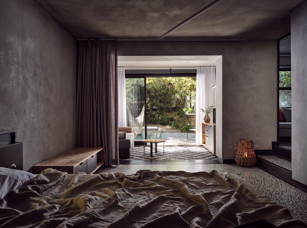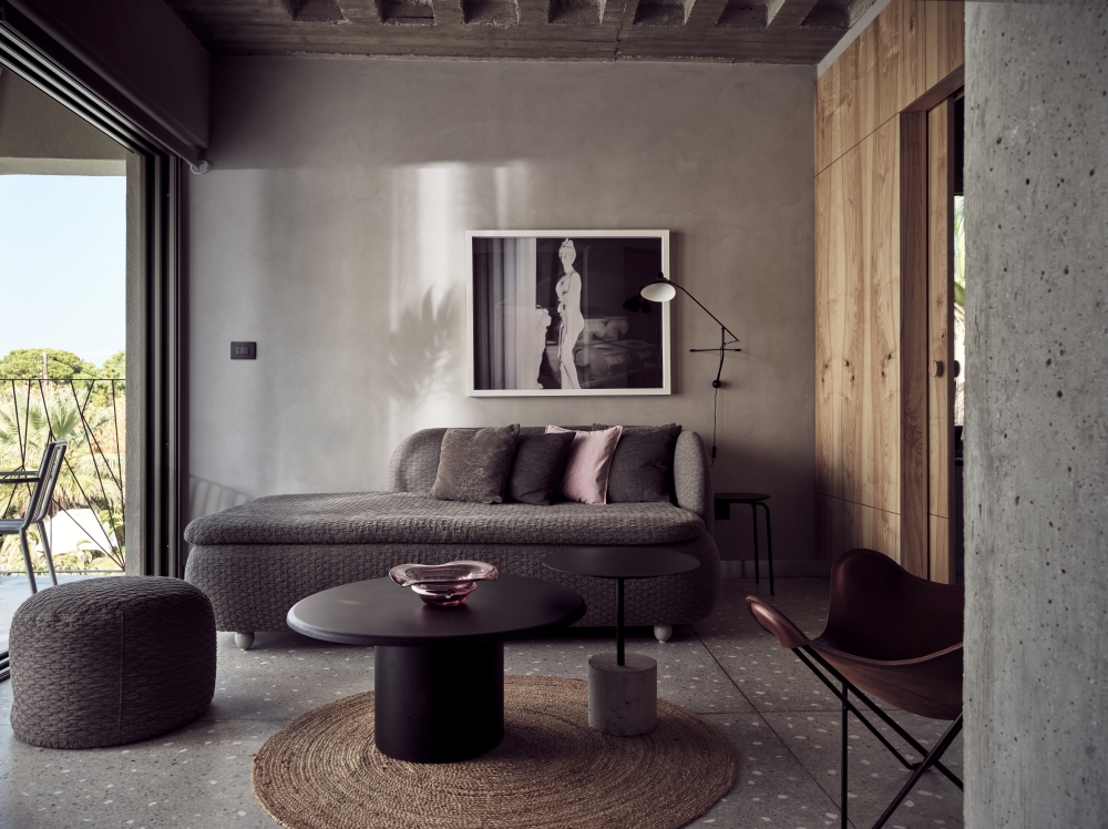 Γενικότερα, ο ανασχεδιασμός των σουιτών ακολούθησε τις δυο βασικές αρχές της φιλοσοφίας του ξενοδοχείου, την υψηλή αισθητική και τη βιώσιμη ανάπτυξη. Τα δάπεδα αποτελούνται από μωσαϊκό με πέτρες της ορεινής Χαλκιδικής, οι βαφές που χρησιμοποιήθηκαν είναι οικολογικές, τα μεταλλικά έπιπλα είναι χειροποίητα και φτιαγμένα ειδικά για το συγκεκριμένο πρότζεκτ, τα μασίφ ξύλα προέρχονται από ελιές τoυ τόπου, ενώ τα γραφεία έχουν κατασκευαστεί από ακατέργαστο μάρμαρο Θάσου. Η συνολική εικόνα, σε συνδυασμό με το γυμνό μπετόν της οροφής, παραπέμπει σε φυσικό σπήλαιο και θυμίζει έντονα τα βράχια της ευρύτερης περιοχής.