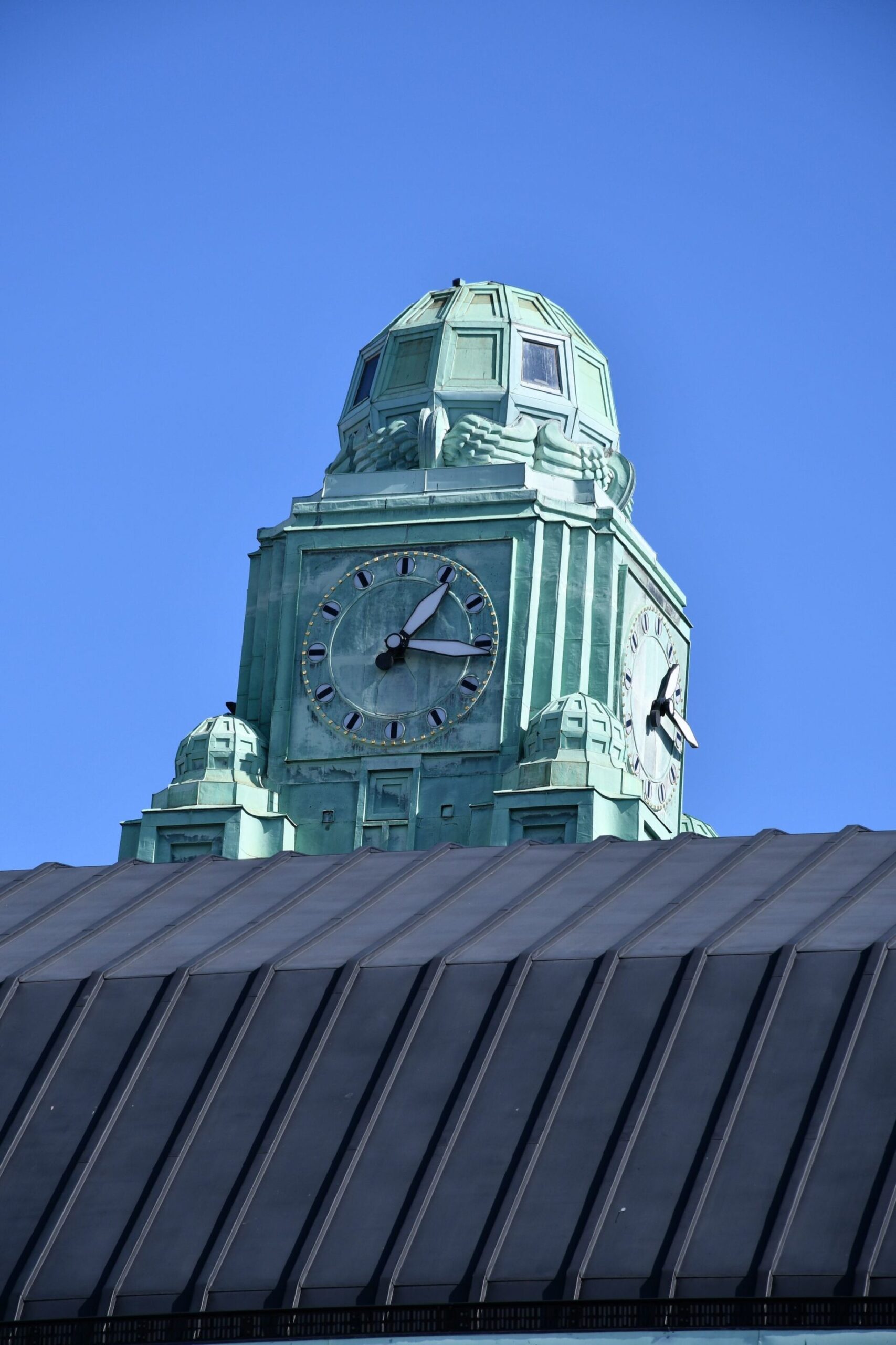 Ο πύργος του ρολογιού έχει ύψος 48,5 μέτρα, ενώ στην κορυφή του υπάρχει μια υδρόγειος σφαίρα που υποστηρίζεται από τέσσερις φτερωτούς τροχούς, που συμβολίζουν την παγκοσμιότητα του σταθμού και των φινλανδικών σιδηροδρόμων. Η διάμετρος κάθε πρόσοψης του ρολογιού είναι ακριβώς 3 μέτρα, ο ωρολογιακός δείκτης κάθε ρολογιού έχει μήκος 119 εκατοστά και ζυγίζει 60 κιλά, ενώ ο λεπτοδείκτης έχει μήκος 150 εκατοστά και ζυγίζει 56 κιλά μαζί με το κρυφό αντίβαρό του (28 κιλά το καθένα).