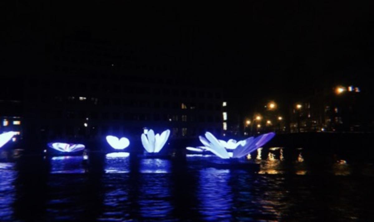 Εμείς εξερευνήσαμε το φεστιβάλ του φωτός της πόλης μέσα από μία γόνδολα σκεπασμένη, και απολαύσαμε τις πολύχρωμες αντανακλάσεις που δημιουργούνταν από τα φώτα στο νερό, και τα video mapping που χρωμάτισαν τα εμβληματικά και σπουδαία κτίρια της πόλης.