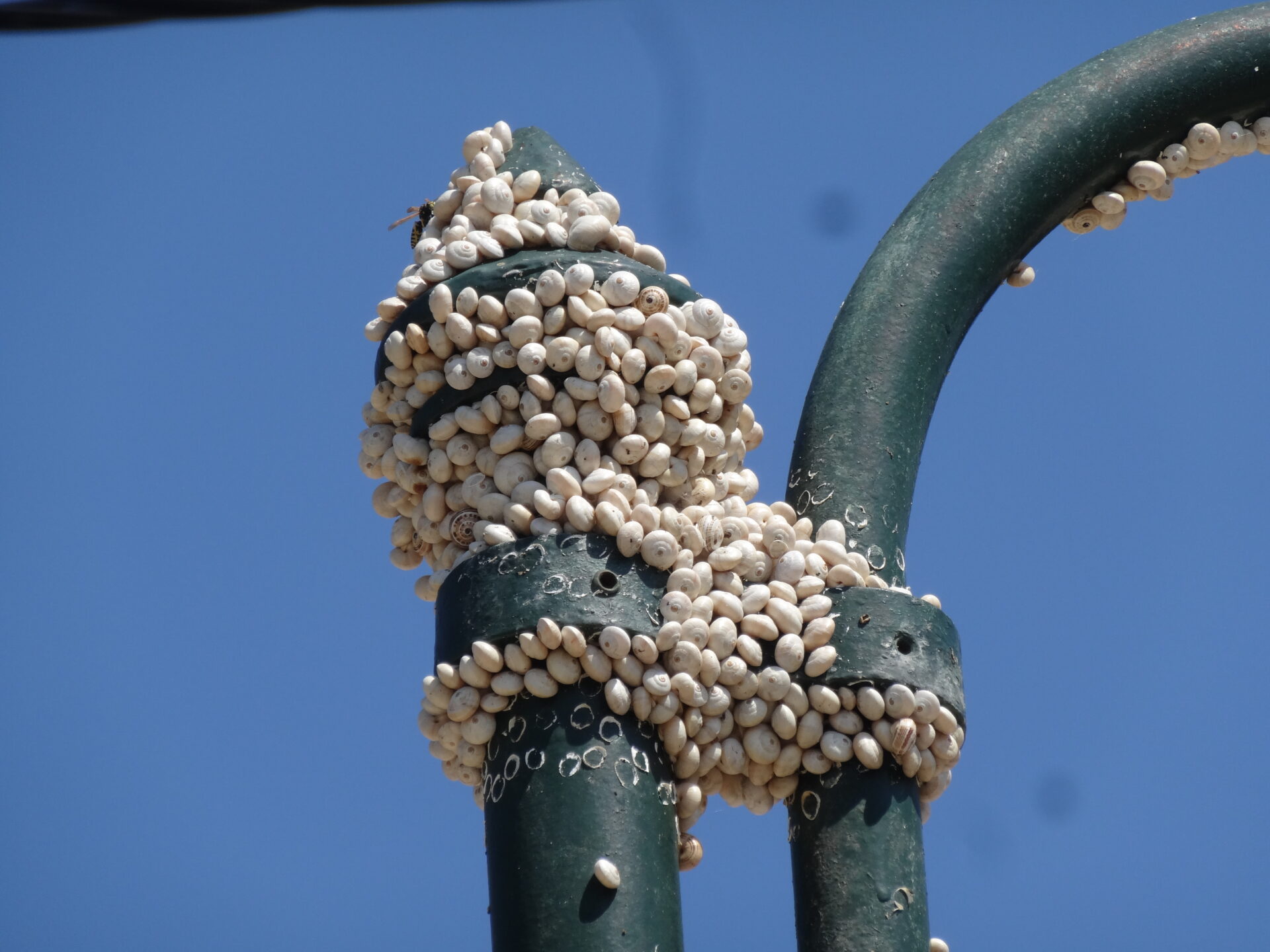 Ηταν μπροστά μου και ήταν πολλά. Πάνω σε στύλους σε κάγκελα και φράχτες. Είναι τα σαλιγκάρια Theba pisana γνωστά και σαν σαλιγκάρια της Μεσογείου. Οι βιολόγοι τα θαυμάζουν γιατί έχουν αναπτύξει έναν έξυπνο μηχανισμό επιβίωσης.