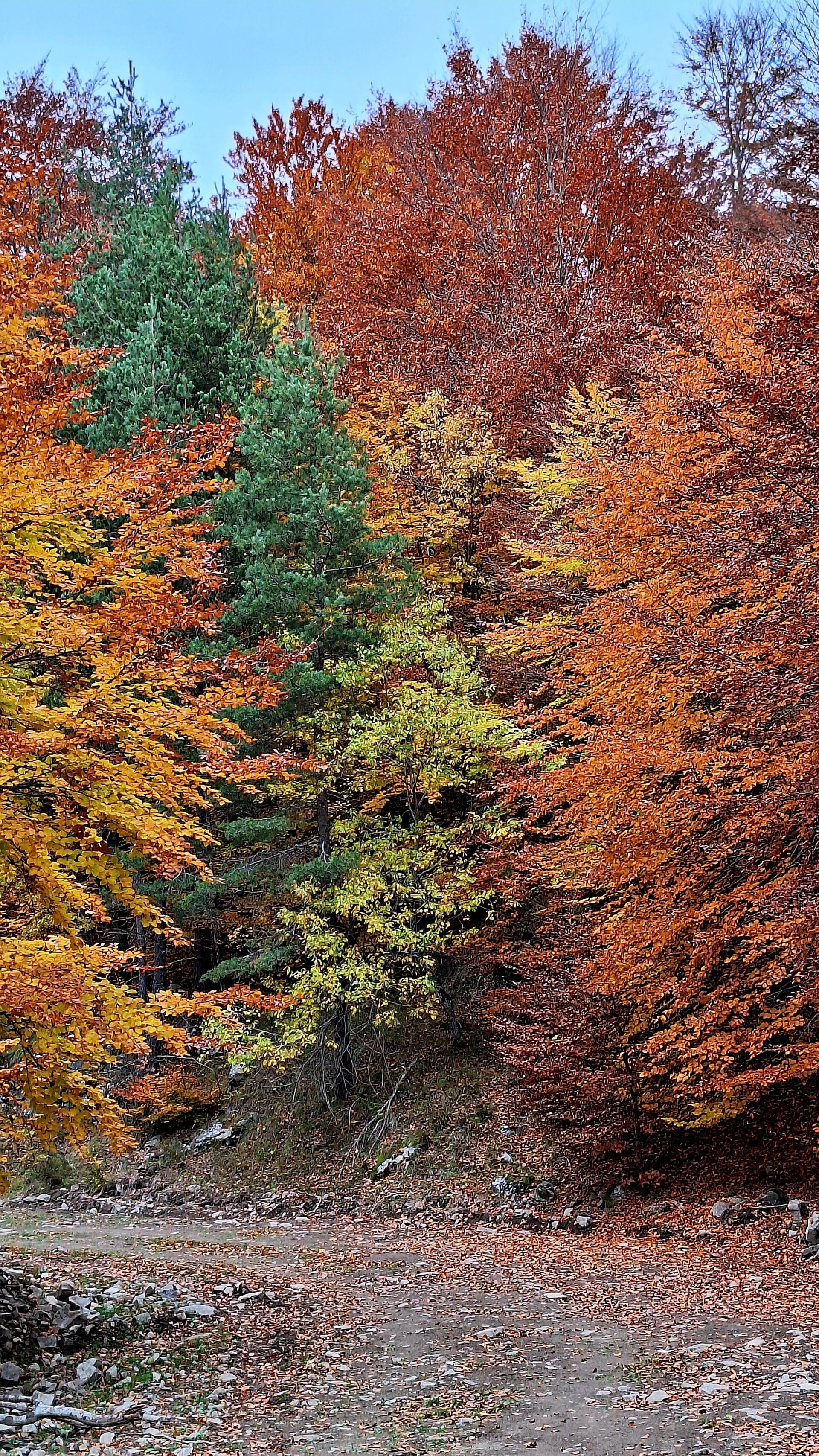 Σφένδαμοι, οξιές, ερυθρελάτη και μαυροπεύκη, όλα ανακατεμένα σε έναν καμβά από θερμά χρώματα