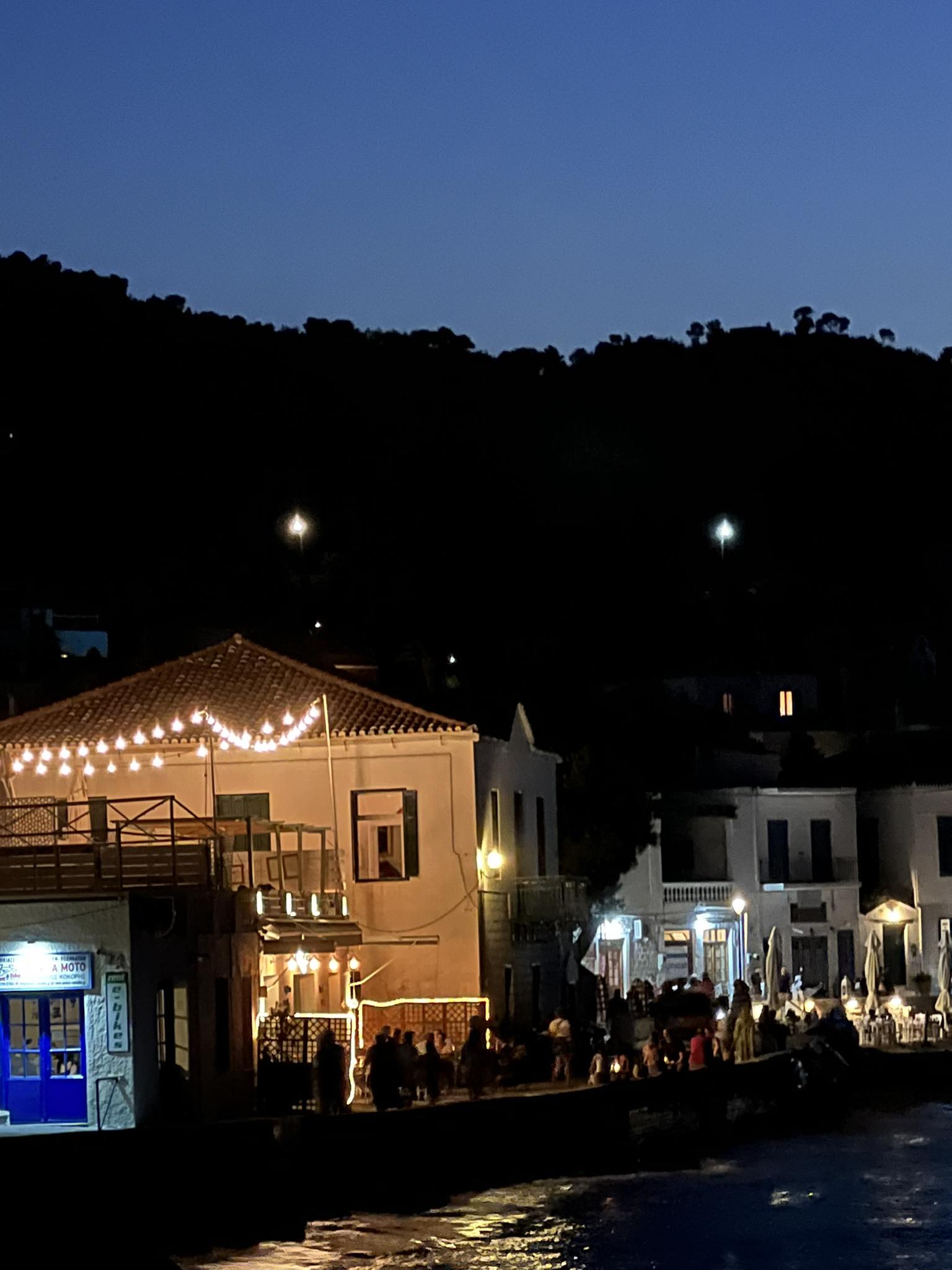 Ακόμα λίγο πιο δίπλα, ήμασταν τυχεροί ένα άλλο βράδυ και πετύχαμε live μουσική. Μία ταράτσα, δύο μουσικοί και ένα μαγαζί να κάνει απόλυτη ησυχία για να ακούσει τις φωνές των δύο καλλιτεχνών. Εκείνη την βραδιά νιώσαμε αρκετά τυχεροί, που ακολουθήσαμε το ένστικτο μας και κατευθυνθήκαμε προς τα εκεί χωρίς να γνωρίζουμε τι θα βρούμε. Εκεί γνωρίσαμε τρία παιδιά από την Αυστρία και καταλάβαμε το πόσο ενθουσιασμένοι είναι με την χώρα μας καθώς είχαν πάει ήδη Πάρο-Νάξο και η επόμενη στάση τους ήταν ο Πόρος. Ανταλλάξαμε απόψεις και προσπαθήσαμε να γνωρίσουμε μέσα από τη σύντομη συνομιλία μας τη δική τους κουλτούρα.