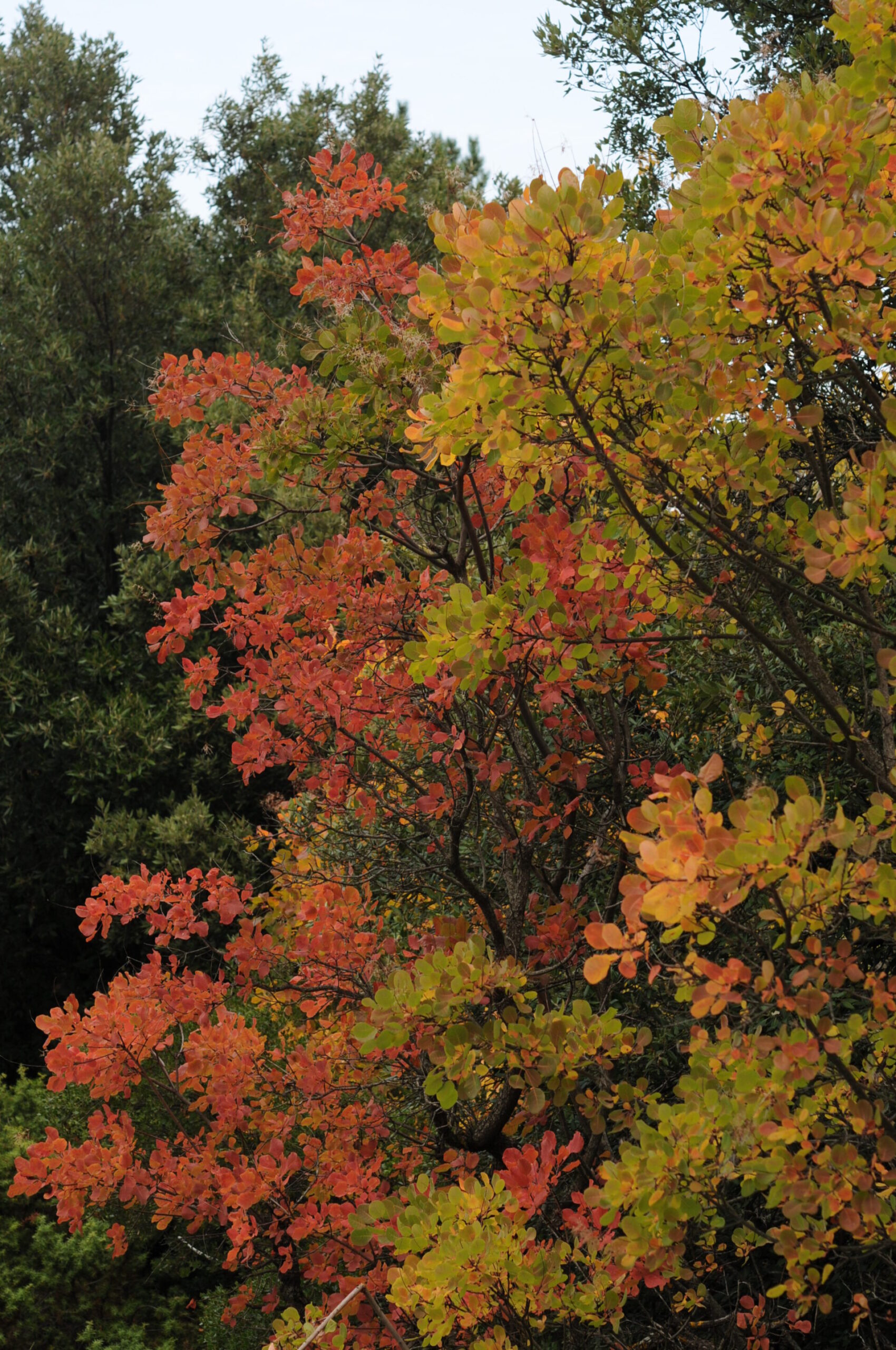 Περπατώντας στα τέλη του Οκτώβρη ανάμεσα στα φθινοπωρινά χρώματα στο μονοπάτι Ε4 από τη θέση Μύλοι λίγο πάνω από το Λιτόχωρο προς τη παλαιά μονή του Αγίου Διονυσίου, παράλληλα με το φαράγγι του Ενιπέα, σε υψόμετρο μεταξύ 300 μ. μέχρι και τα 500 μ. συναντάμε την ονομαζόμενη μεσογειακή ζώνη των αείφυλλων πλατύφυλλων (μακκία) ένα μίγμα κυρίως από αειθαλείς, αλλά και φυλλοβόλους θάμνους, ύψους 2-4 μ.