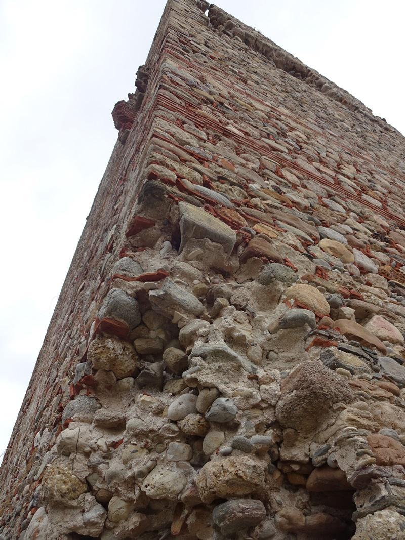 Ο Πύργος παρουσιάζει πιο επιμελημένη τοιχοδομία. Είναι κτισμένος με χονδροδουλεμένους συλλεκτούς λίθους, επάλληλα ή μεμονωμένα πλινθία στους οριζόντιους και κάθετους αρμούς ενώ στις ακμές προτιμώνται πελεκημένα αγκωνάρια. Σε δυο σημεία σχηματίζονται δυο ζώνες με τέσσερις σειρές πλίνθων. Ορίζουν το επίπεδο του δευτέρου και τρίτου ορόφου.