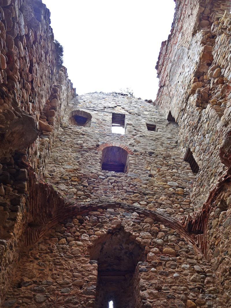 Ο δεύτερος όροφος χωρίζεται από τον τρίτο με κτιστό φουρνικό που στηρίζεται μέσω σφαιρικών τριγώνων, λείψανα των οποίων διατηρούνται στις γωνίες, στους περιμετρικούς τοίχους. Ο τρίτος από τον τέταρτο μάλλον με ξύλινο δάπεδο. Ο τέταρτος όροφος καλύπτεται με καμάρα, επάνω από την οποία σχηματίζεται το δώμα του πύργου με τις επάλξεις, που όμως δεν σώζονται. Στον ανατολικό τοίχο του διαμορφώνονται δυο κόγχες που ανήκουν στο παρεκκλήσιο του πύργου. Οι τρεις πρώτοι όροφοι επικοινωνούν με κτιστή θολωτή κλίμακα διαμορφωμένη μέσα στο πάχος της τοιχοποιίας.