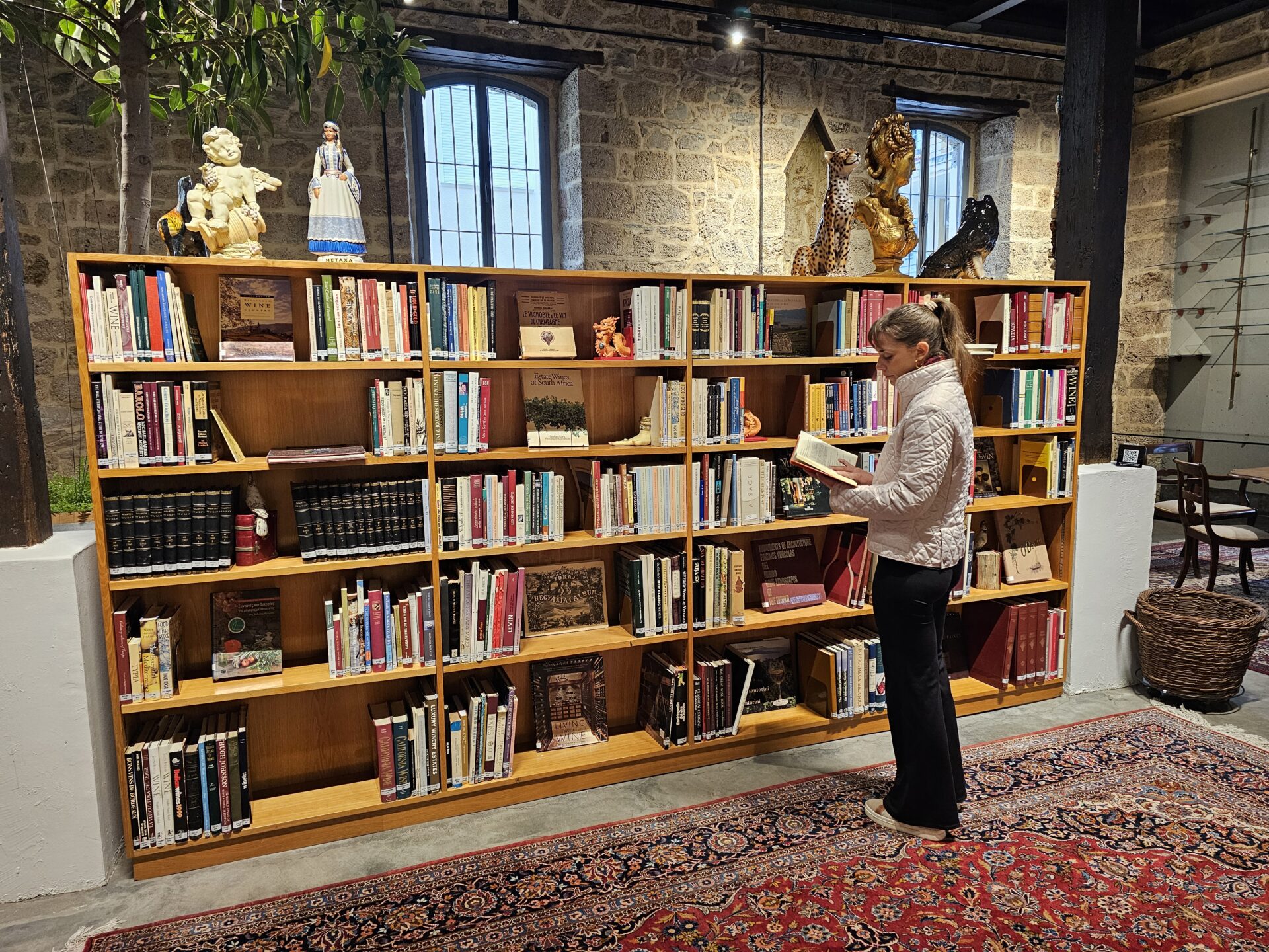Κάπως έτσι με βρίσκει πάντα η αγάπη μου για τα βιβλία, όρθιο, ακίνητο, έτοιμο να μείνω ώρες σε έναν χώρο χωρίς να νιώσω τον χρόνο να περνά. Θα μπορούσα να μείνω εδώ μέσα ολόκληρη μέρα διαβάζοντας, ξεφυλλίζοντας ιστορίες για το κρασί, για το αμπέλι, για ανθρώπους που έμαθαν να παρατηρούν τη φύση με υπομονή.