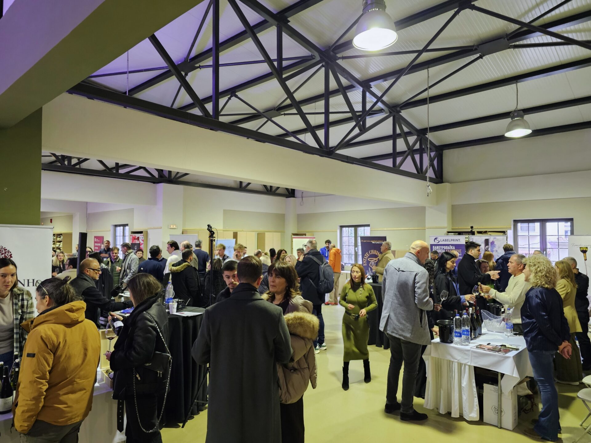 Μπαίνεις λοιπόν σε αυτόν τον υπέροχο χώρο, βλέπεις κάποια παλιά μηχανήματα- το ισόγειο λειτουργεί σαν μουσείο- σε καλωσορίζουν οι άνθρωποι του Συνδέσμου Οινοποιών και Αμπελουργών της Νάουσας, παίρνεις τις πληροφορίες σου, το ποτήρι σου και ανεβαίνεις στον πρώτο όροφο.