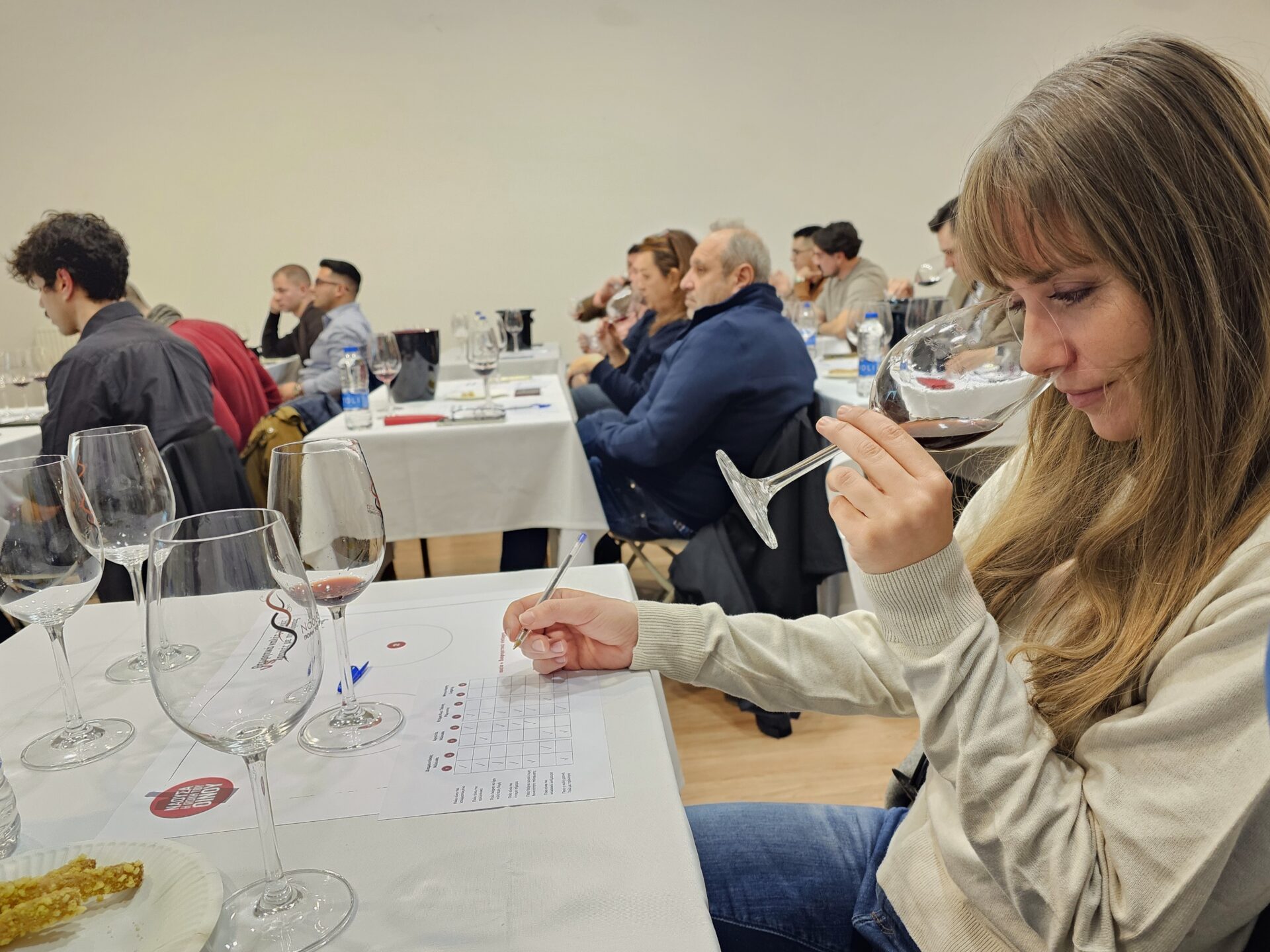 Τι κάναμε; Μια κάθετη δοκιμή της ίδιας ετικέτας από το ίδιο οινοποιείο, αλλά σε διαφορετικές χρονιές. Έπρεπε να δοκιμάσουμε τυφλά και να συγκρίνουμε τις δύο χρονιές από κάθε οινοποιείο — συνολικά τέσσερα — και να σημειώσουμε τη γνώμη μας σε ένα ειδικό έντυπο. Τώρα, αν σου περιγράψω το έντυπο, όπως είπε γελώντας η Αρετή, «την βάψαμε». Και δεν είχε άδικο.