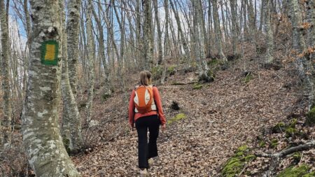 Σε λίγο θα περάσετε δίπλα από άγριους κρόκους και ίριδες – προσέξτε να μην τα πατήσετε και φυσικά, να μη κόψετε κανένα. Έπειτα μπαίνετε στο δάσος με τις οξιές. Εκεί, δοκιμάστε να αγκαλιάσετε ένα δέντρο.