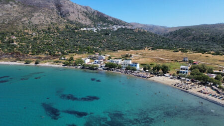 Μόλις ένα χιλιόμετρο από το χωριό βρίσκεται η ειδυλλιακή παραλία Λιθί, όπου η τυρκουάζ θάλασσα συναντά μια παρθενική αμμώδη ακτή.