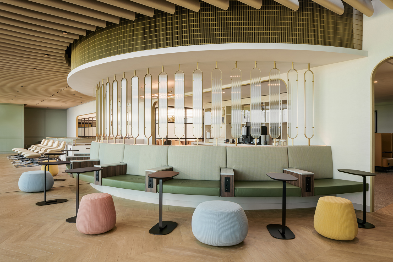 Τα χαρακτηριστικά που ξεχωρίζουν περιλαμβάνουν ένα καλαίσθητο Welcome Bar με μεγάλη ποικιλία ποτών, μοναδικό Wine Bar με κύριο οινοποιό τον Gerard Bertrand από τη Νότια Γαλλία και ένα TeaSalon που προσφέρει ποικιλίες τσάι από όλο τον κόσμο. Για τους ταξιδιώτες που ταξιδεύουν για επαγγελματικούς σκοπούς και προτιμούν έναν πιο ήσυχο χώρο, υπάρχουν ιδιωτικές καμπίνες εργασίας και απομονωμένες γωνιές σε όλο το lounge.