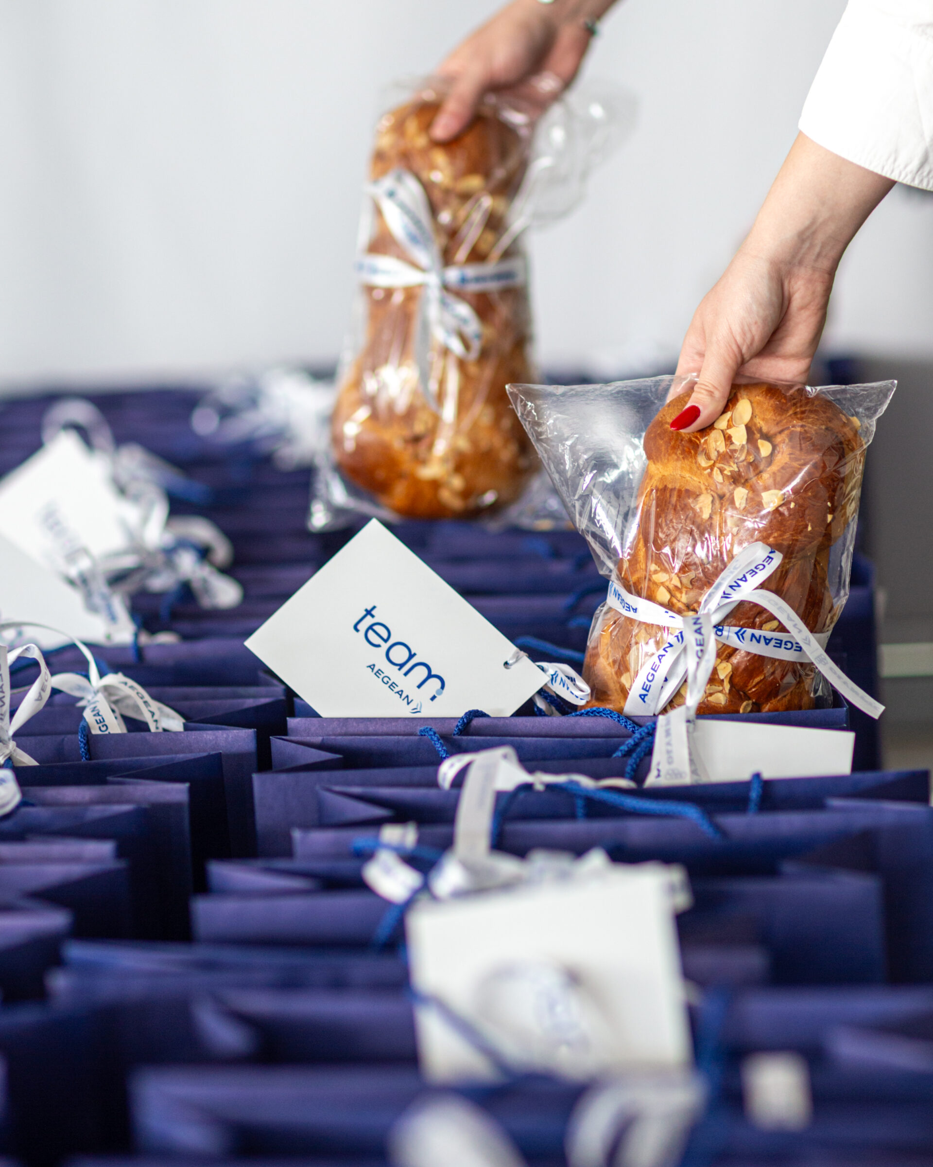 Για ακόμη μία φορά, καθοριστική για την επιτυχία της δράσης ήταν η συμμετοχή της εθελοντικής ομάδας εργαζομένων “team AEGEAN”, που με αστείρευτο ενθουσιασμό αγκάλιασε και αυτή την πρωτοβουλία. Εθελοντές εργαζόμενοι της εταιρείας συγκεντρώθηκαν μία ημέρα πριν την εκδήλωση και σε κλίμα ενθουσιασμού και συνεργασίας προετοίμασαν και συσκεύασαν πασχαλινά εδέσματα με ευχετήριες κάρτες για το Πάσχα και την Ανάσταση για όλους τους προσκεκλημένους, στέλνοντας ένα μήνυμα αγάπης και φροντίδας, ενώ την ημέρα της μουσικής παράστασης φρόντισαν με προσοχή και χαμόγελο κάθε συμμετέχοντα, δημιουργώντας μια ζεστή και αξέχαστη εμπειρία γεμάτη συγκίνηση, χαρά και αίσθημα προσφοράς.