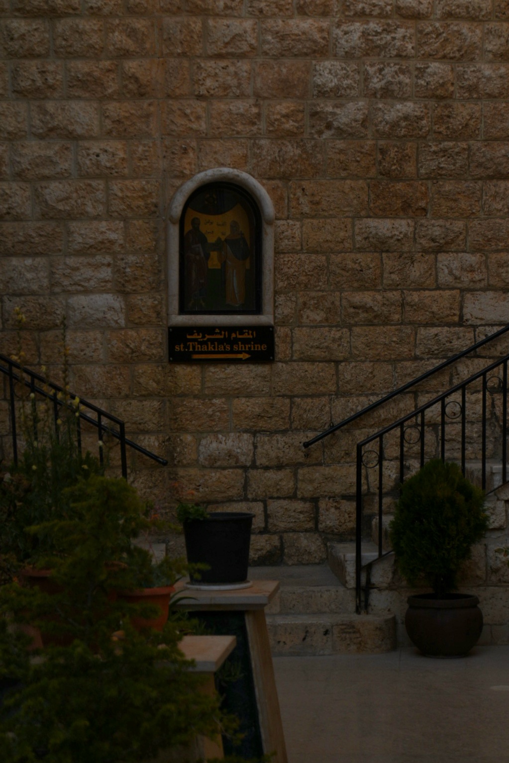 Από το μοναστήρι κατηφορίσαμε μέσω κάποιων πέτρινων περασμάτων προς το μοναστήρι της Αγίας Θέκλας.Το μοναστήρι της Αγίας Θέκλας στη Μααλούλα είναι από τα πιο σημαντικά και ιστορικά μοναστήρια της Συρίας, καθώς συνδέεται με την ιστορία της πρώτης γυναίκας μάρτυρα της χριστιανικής πίστης, της Αγίας Θέκλας. Η Θέκλα ήταν μαθήτρια του Αποστόλου Παύλου και, σύμφωνα με την παράδοση, κατέφυγε στη Μααλούλα για να γλιτώσει από τους διώκτες της εξαιτίας της πίστης της στον χριστιανισμό.