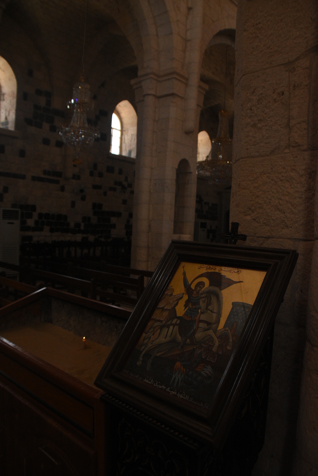 Με την επίσκεψή μας στο Χομς, κάναμε μια στάση στην εκκλησία της Παρθένου Μαρίας. Στο υπόγειο αυτής βρίσκεται κομμάτι από τη ζώνη της, το οποίο παρά τις διαρκείς εντάσεις όλα αυτά τα χρόνια στην πόλη, κατάφερε να προστατευτεί και πλέον εκτίθεται κανονικά.