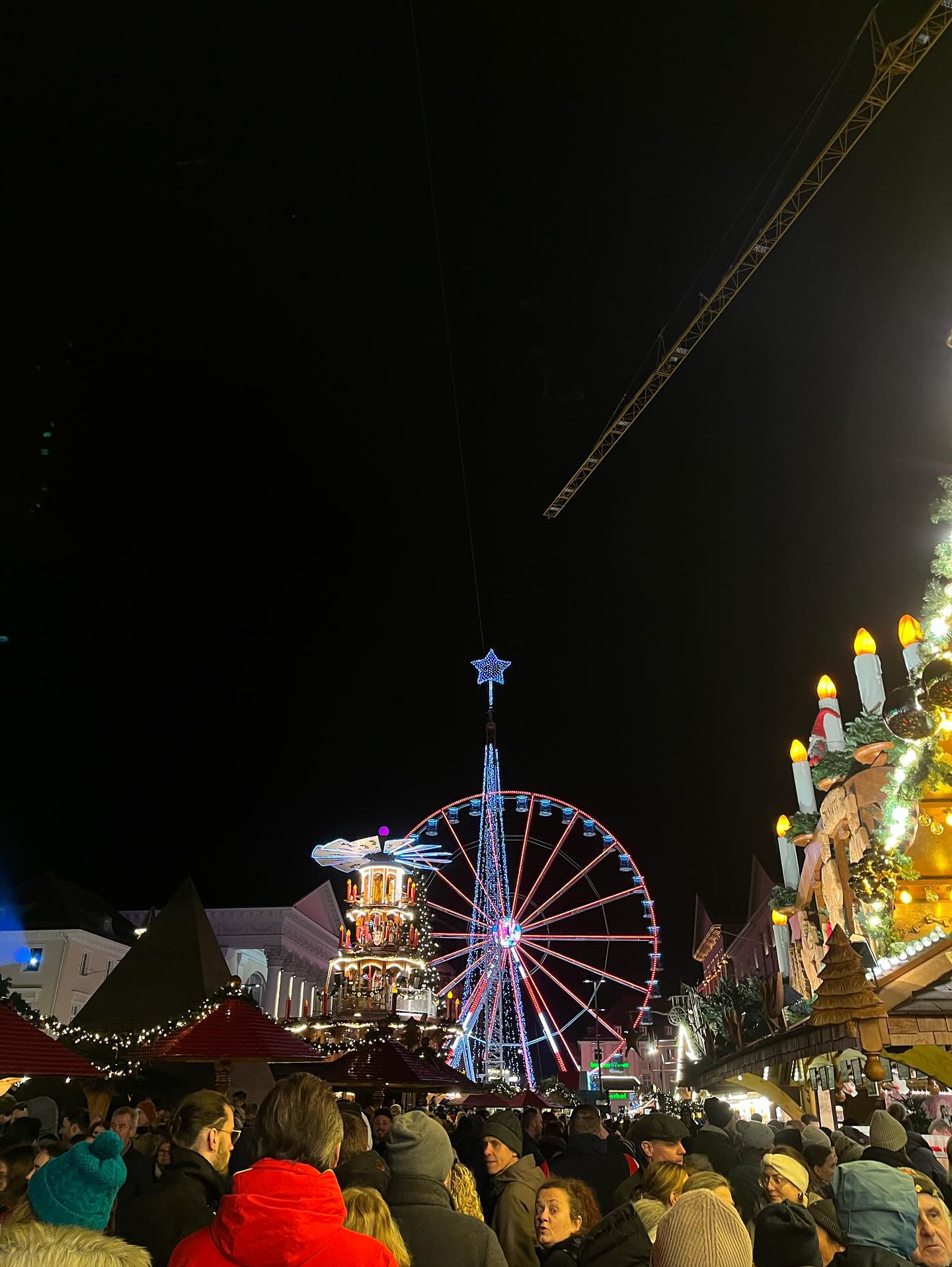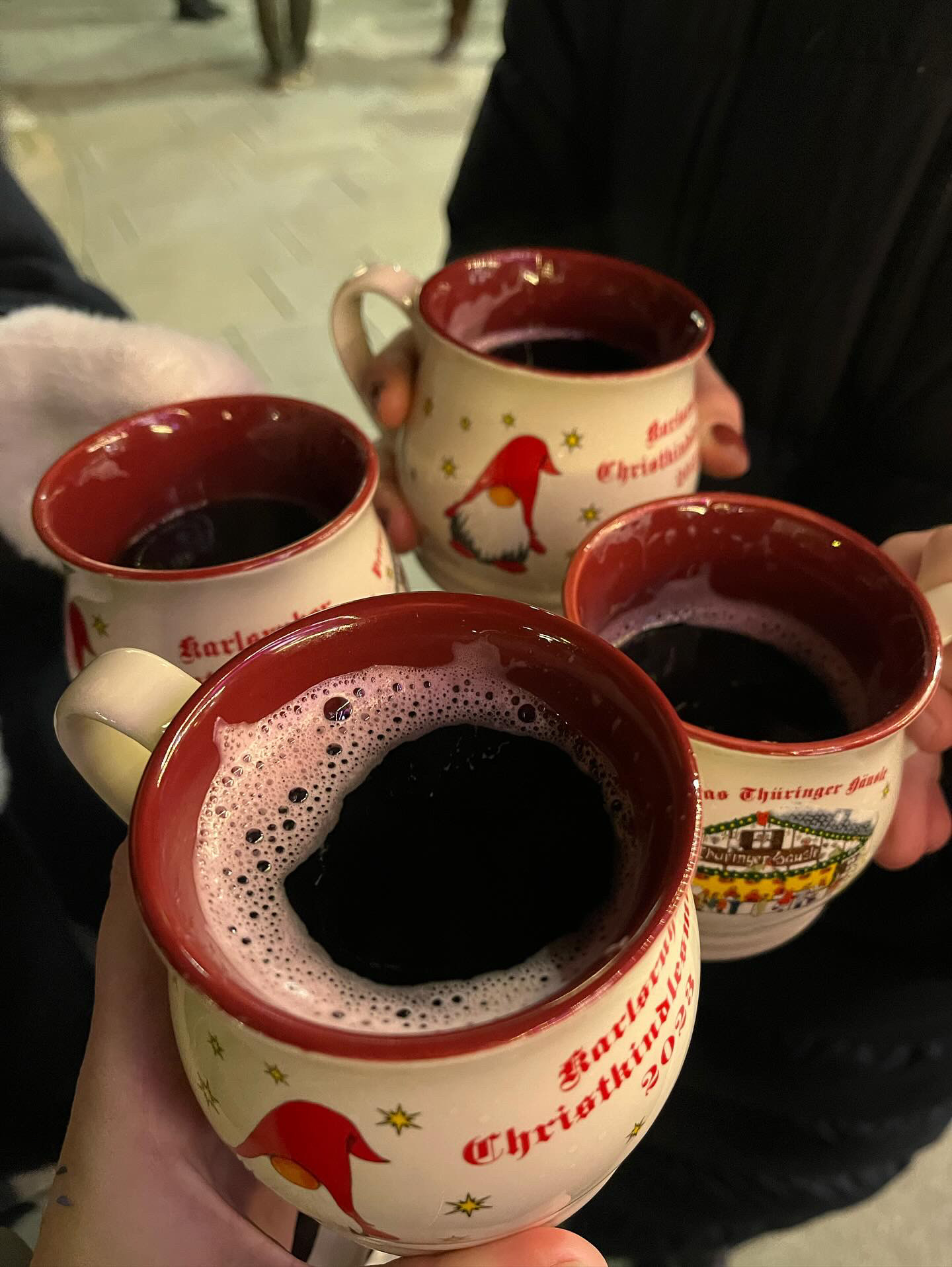 Λίγα βήματα χρειάστηκαν μόνο, με τις μικρές αποστάσεις της πόλης να είναι ιδανικές για να την εξερευνήσεις γρήγορα και εύκολα, για να φτάσουμε στην περιοχή που βρίσκεται το επιβλητικό Ανάκτορο του Καρλ. Εκεί, κάναμε μια στάση για να πιούμε λίγο ζεστό κρασί ή αλλιώς Gluhwein, όπως λέγεται στα Γερμανικά αλλά και για να απολαύσουμε γερμανικά παραδοσιακά εδέσματα, όπως μια παραλλαγή του hot dog με λαχταριστά λουκάνικα μέσα σε ψωμάκια, που προσέφεραν οι ξύλινες καλύβες που ήταν στημένες εκεί.