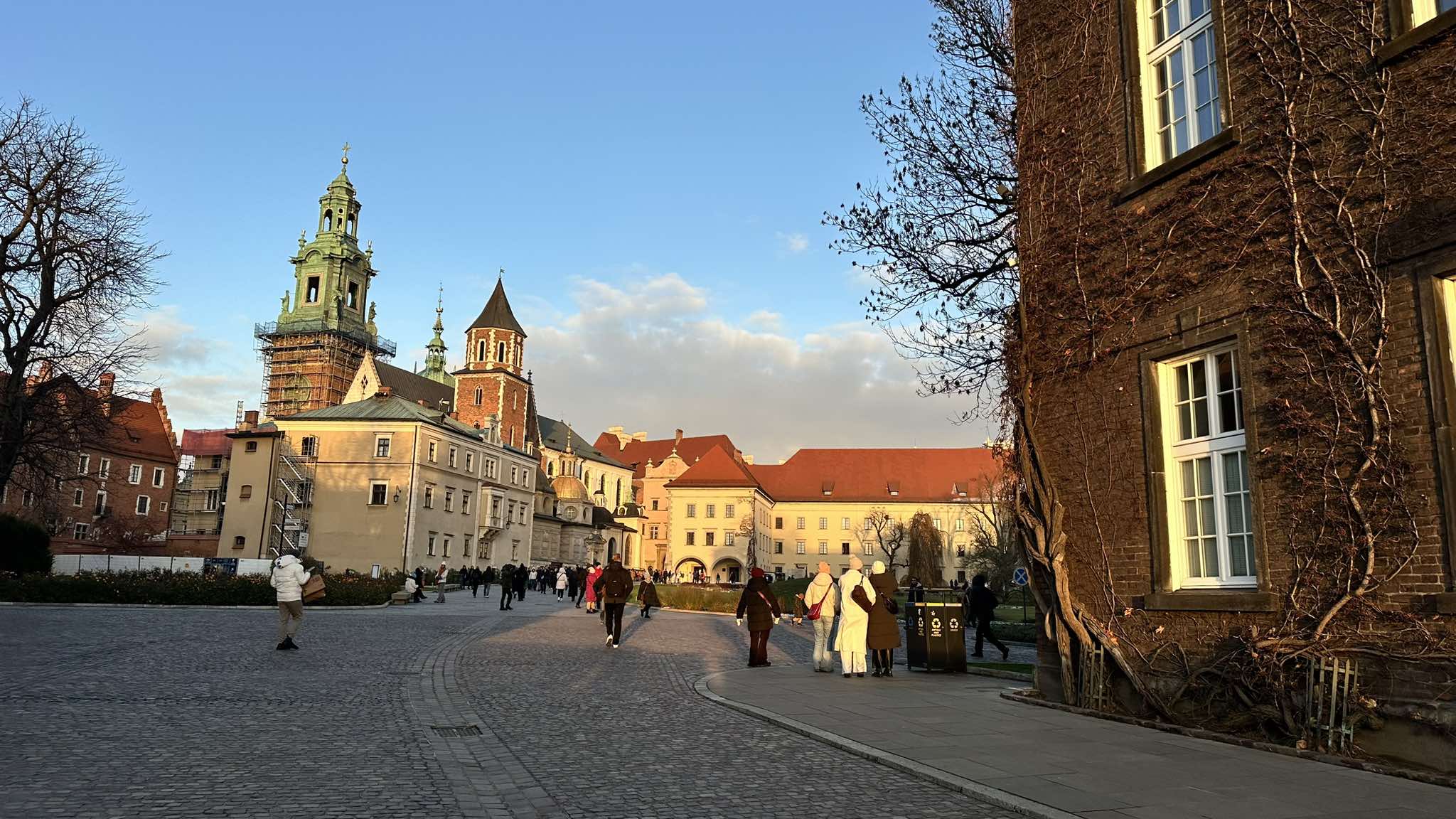 Μείναμε στο κάστρο για αρκετή ώρα, περπατήσαμε εντός του και χαζεύαμε την κάθε λεπτομέρεια. Ύστερα, την ώρα που έπεφτε ο ήλιος γύρω στις 4 το μεσημέρι, περατζάδα στον Βίστουλα, πλάι στον θρυλικό δράκο (γλυπτό) που εικάζεται πως ζούσε μέσα στο πάρκο. Τα χρώματα του ουρανού πορφυρά καθρεφτίζονταν στο ποτάμι, από την μία πλευρά η παλιά πόλη και από την άλλη σύγχρονα κτίρια και συναγωγές. Διαρκείς συγκρίσεις του τότε και του σήμερα ξεδιπλώνονταν μπροστά μας.