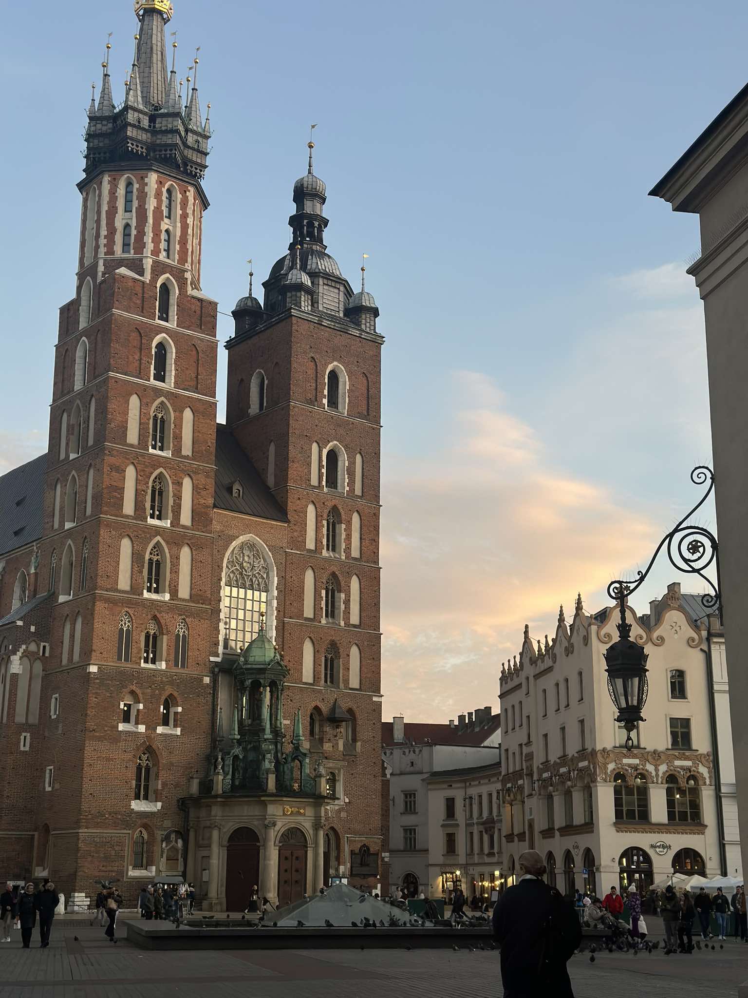 Το βράδυ, όταν οι άνθρωποι μαζεύονται στα σπίτια τους και η πόλη παραδίδεται στη σιωπή, είναι ίσως πιο μαγική. Το μεγαλοπρεπές Sukiennice, στέκεται περήφανο σαν ένας σιωπηλός φρουρός του παρελθόντος, η σπουδαία γοτθική εκκλησία της Αγίας Μαρίας (Kościół Mariacki) που δεσπόζει στην πλατεία, ενώ ο επιβλητικός Πύργος του Ράιμπο την “κοιτά” αντίκρι.