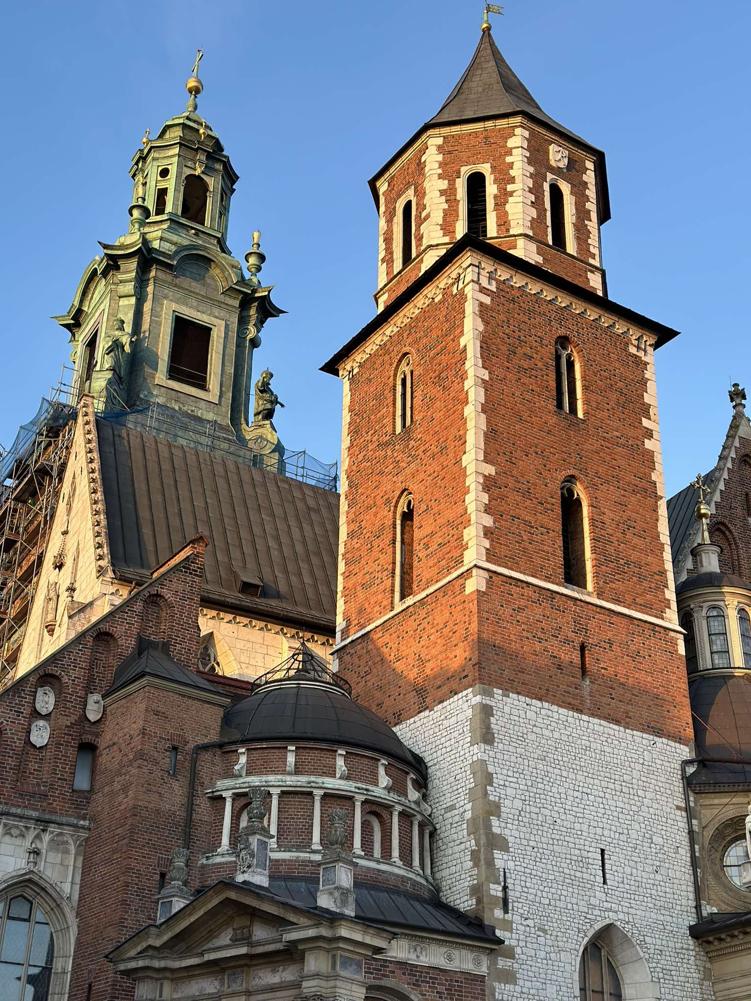 Την επόμενη ημέρα, φτάσαμε στο κάστρο της Wawel, ένα από τα ομορφότερα που έχουν συναντήσει τα μάτια μου. Στέκει ως το πιο ισχυρό σύμβολο της πόλης μέχρι σήμερα, με την επιβλητική του παρουσία να αφηγείται ιστορίες αιώνων. Εδώ, στο λόφο του Βάβελ, το παρελθόν αναστενάζει και το παρόν ψιθυρίζει, ενσωματώνοντας τις αναμνήσεις ενός βασιλικού θρόνου που έχει περάσει μέσα από πολέμους, θριάμβους και καταστροφές. Η θέα από την κορυφή είναι αναμφίβολα από τις πιο συγκλονιστικές στην Κρακοβία — η πόλη απλώνεται μπροστά σου σαν μια ζωντανή εικόνα, ενώ το ποτάμι Βιστούλα κυλάει αργά, αντικατοπτρίζοντας τις γκρίζες, συννεφιασμένες μέρες που τόσο συχνά αγκαλιάζουν την πόλη.