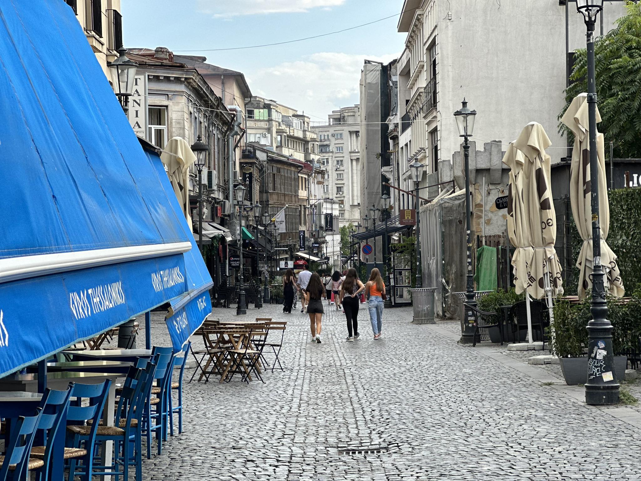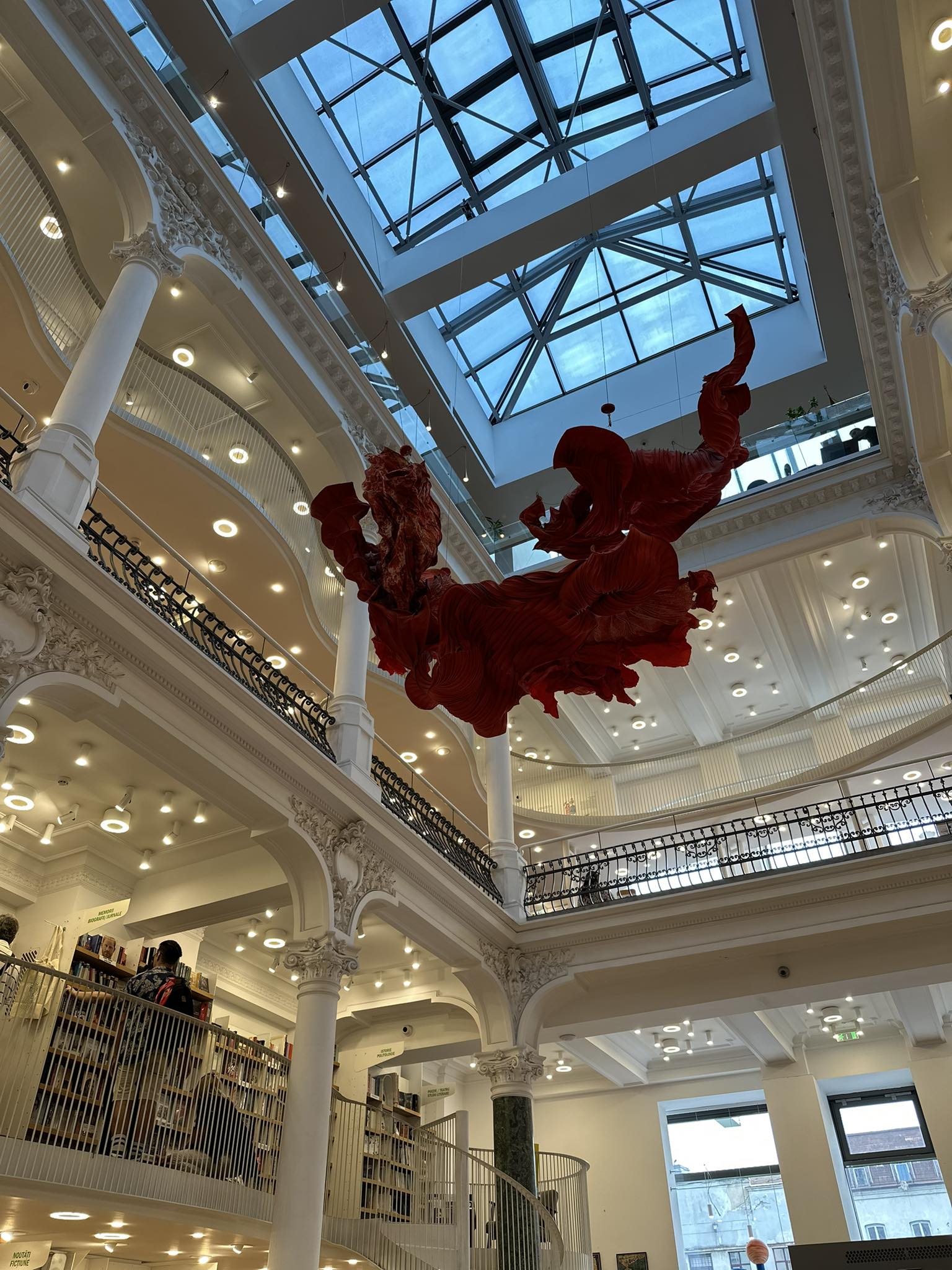 Εκεί κάπου συναντάς πλανόδιους μουσικούς που παίζουν τραγούδια του Elvis Presley ύμνους του έρωτα και νεαρά ζευγάρια να αγκαλιάζονται και να χορεύουν. Μικρές καλαίσθητες καντίνες, με χειροποίητο παγωτό και δροσερά cocktails, εστιατόρια σε κρυφούς κήπους παλιών μοναστηριών, καλλιτέχνες του δρόμου, ένας αέρας κοσμοπολίτικος και κατεξοχήν τουριστικός διότι όπως μάθαμε την παλιά πόλη επισκέπτονται πια μόνο τουρίστες. Εκεί μπήκαμε στην πιο όμορφη βιβλιοθήκη της Ευρώπης, το Cărturești Carusel, το ρουμάνικο βιβλιοπωλείο που στεγάζεται σε ένα κτίριο του 19ου αιώνα και έχει μέσα του 10.000 βιβλία.