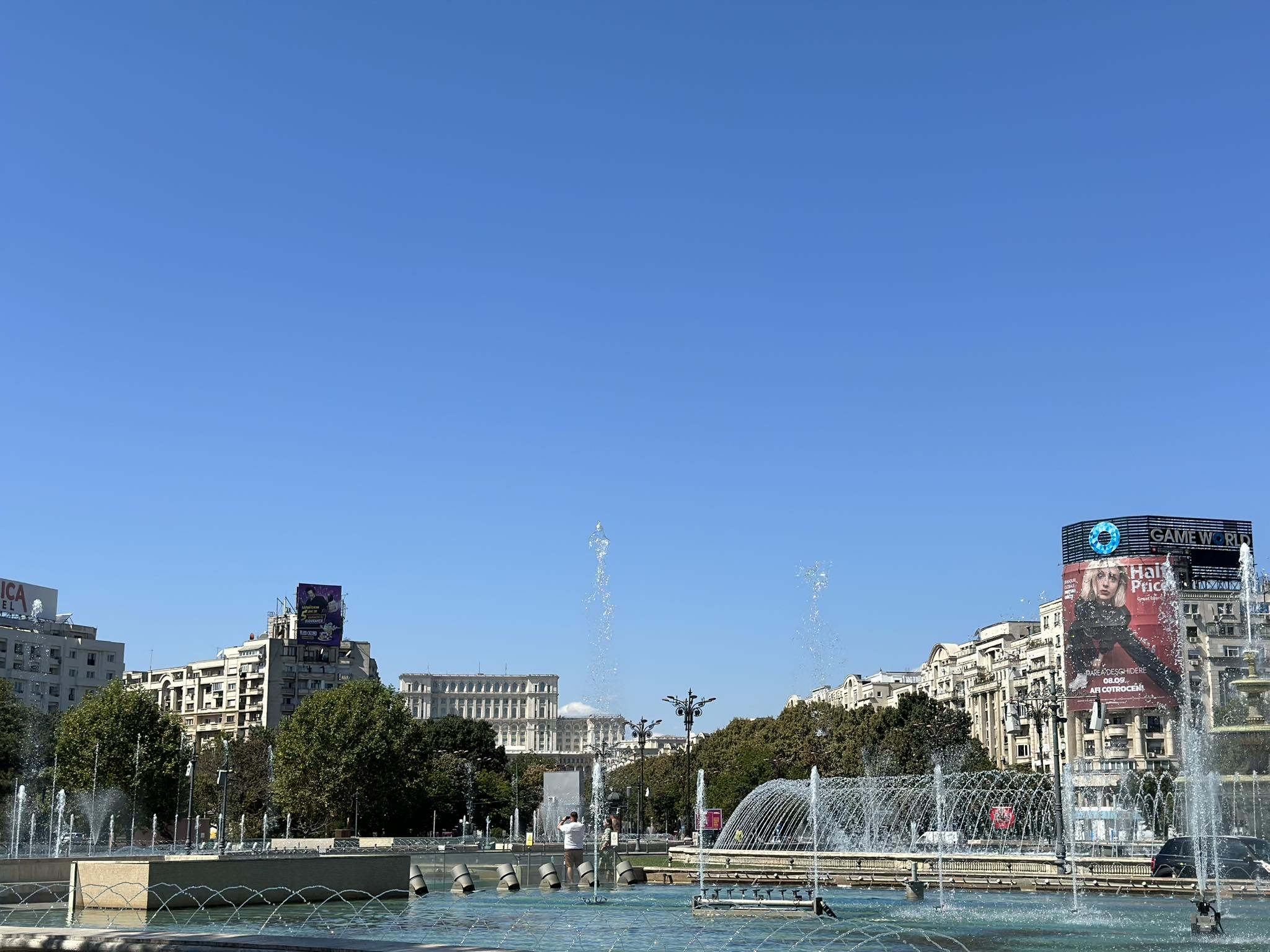 Φτάσαμε στο Βουκουρέστι Παρασκευή μεσάνυχτα, το ξενοδοχείο μας μερικά χιλιόμετρα από το κέντρο, η πόλη το βράδυ φωτισμένη με θερμές λάμπες που δημιουργούσαν σκιάσεις ανάμεσα στα χιλιάδες δέντρα των δρόμων, στην παλιά πόλη τα διασωθέντα νεοκλασικά διαμάντια έλαμπαν ανάμεσα στις στρογγυλές πλατείες, το παράθυρο μας έβλεπε το δεύτερο μεγαλύτερο κτίριο στην Ευρώπη, το παλάτι του λαού.