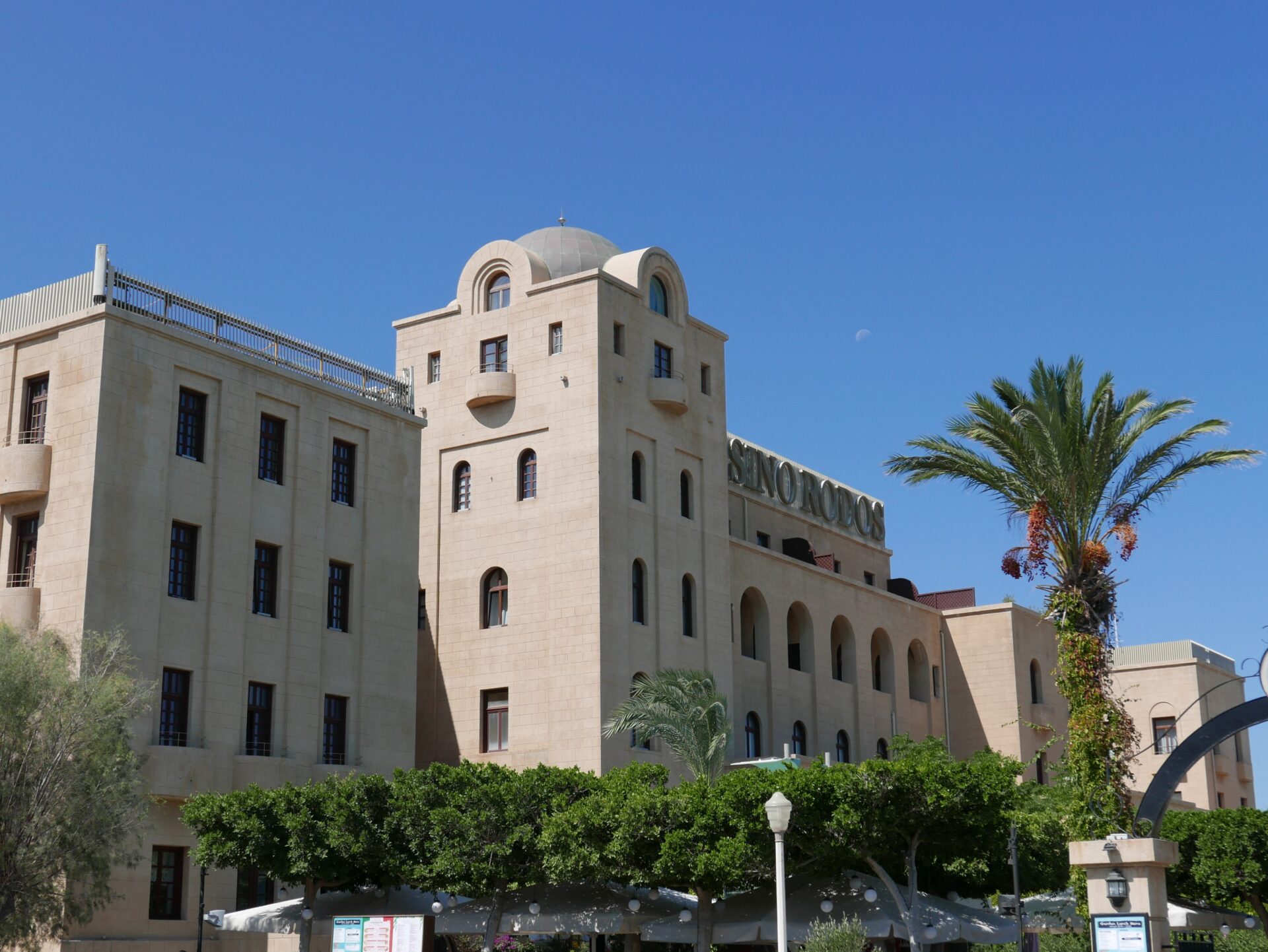 Το «Ξενοδοχείο των Ρόδων» (Grande Albergo Delle Rose) οικοδομήθηκε την περίοδο 1925-1927 με σχέδια του Φλορεστάνο ντι Φάουστο σε συνεργασία με τον Ιταλό πολιτικό μηχανικό και αρχιτέκτονα Μικέλε Πλατάνια. Το πολυτελές ξενοδοχείο, που πήρε το όνομα του από τον κήπο με τις τριανταφυλλιές, συνδύαζε αρχικά μορφολογικά στοιχεία βυζαντινής, αραβικής, οθωμανικής και βενετσιάνικης προέλευσης, τα οποία όμως στη συνέχεια αφαιρέθηκαν, λόγω του ανατολίτικου ύφους που προσέδιδαν. Tο «Ξενοδοχείο των Ρόδων» φιλοξένησε στο παρελθόν διαπρεπείς προσωπικότητες, όπως ο Ελευθέριος Βενιζέλος, ο Κωνσταντίνος Καραμανλής, ο Γεώργιος Παπανδρέου, ο Αριστοτέλης Ωνάσης και ο Ουίνστον Τσόρτσιλ. Το ξενοδοχείο λειτούργησε μέχρι τη δεκαετία του 1970 και στη συνέχεια εγκαταλείφθηκε. Το κτήριο ανακαινίστηκε και άνοιξε και πάλι στο κοινό το 2002, λειτουργώντας ως καζίνο και ξενοδοχείο.