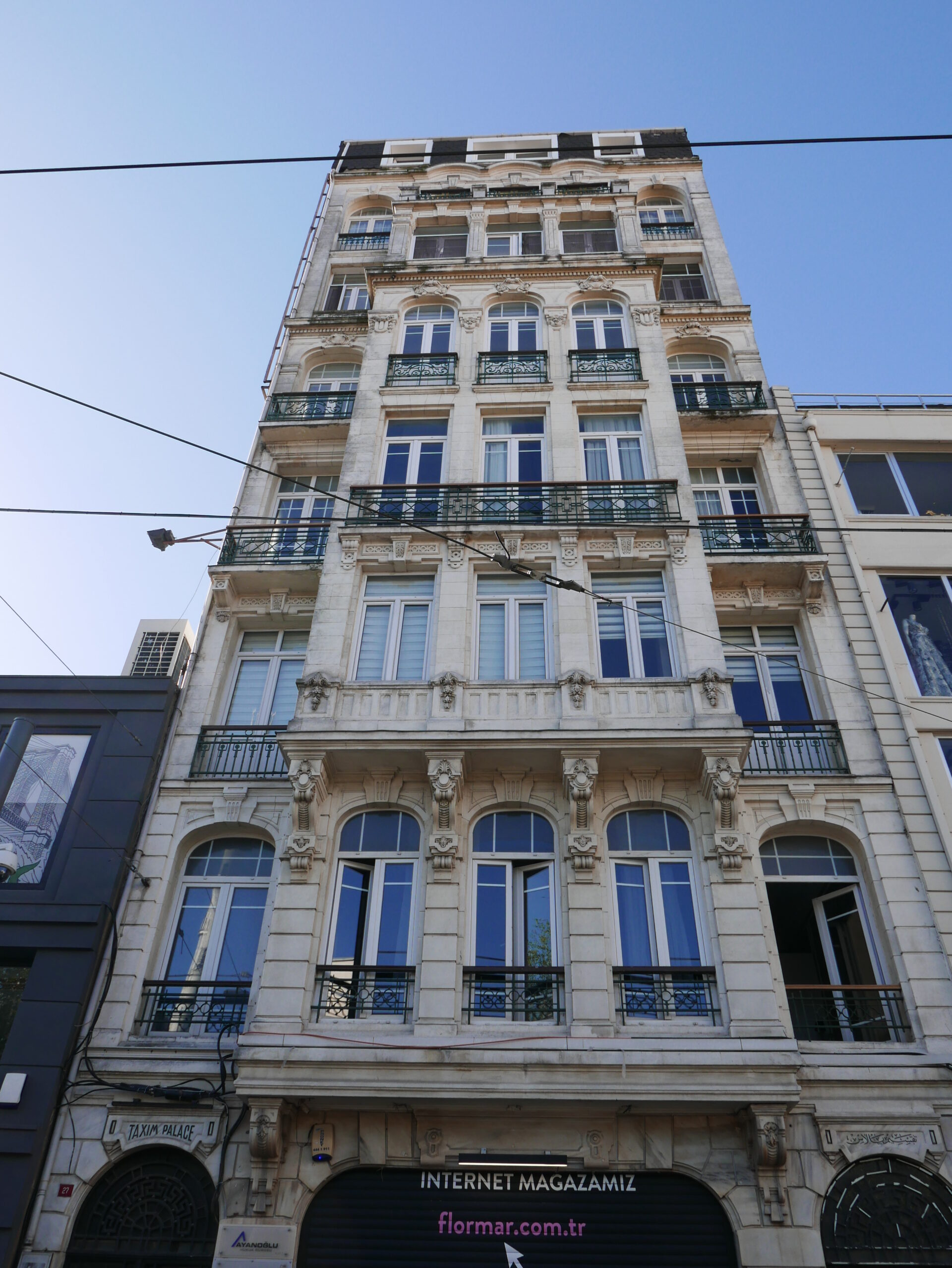 Η Μεγάλη Οδός του Πέραν (σημερινή Istiklal Caddesi) φιλοξενεί πολλά κτίρια που σχεδιάστηκαν από Έλληνες (Ρωμιούς) αρχιτέκτονες,