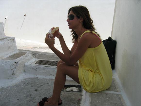 Ατελείωτες οι συζητήσεις με την κ. Δέσποινα, την ιδιοκτήτρια του πανέμορφου ξενοδοχείου, όπου μέναμε, για την ιστορία του νησιού, για τους δύσκολους χειμώνες, όταν οι κάτοικοι λιγοστεύουν και είναι πάνω κάτω- οι μόνιμοι- 2.000. Ήθελε να μάθει για την Θεσσαλονίκη, την είχε επισκεφτεί κάποτε- και θέλει να ξανάρθει. Μας στέλνει ακόμα κάρτες στις γιορτές. Της παραπονέθηκα κάποια στιγμή ότι δεν είχα βρει στα εστιατόρια της Χώρας, κολοκυθανθούς- η Ίος φημίζεται για τους κολοκυθανθούς της. Το επόμενο πρωί μας έφερε, μαζί με τον πρωινό, και δύο τάπερ. «Να τσιμπήσετε κάτι, αν πεινάσετε στη θάλασσα» είπε η κ. Δέσποινα. Κολοκυθανθοί και πορτοκαλόπιτα από τα χεράκια της… Και μόνο για τους κολοκυθοανθούς ξαναπήγαινα στο νησί.