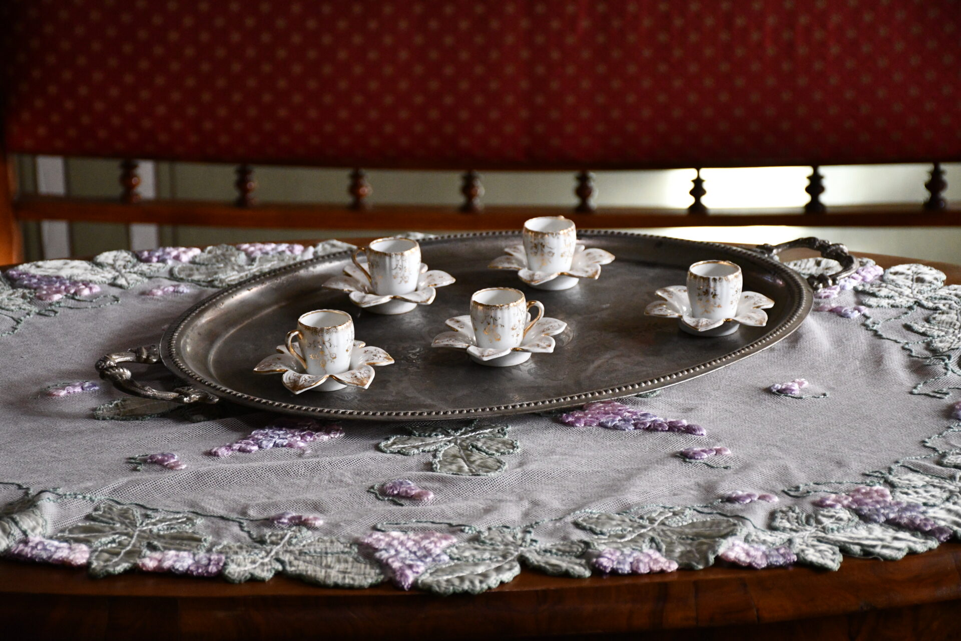 Σε ένα τοίχο κάθε μεγάλου δωματίου υπάρχει μια διακοσμητική κόγχη τύπου «αλαφράγκα» που σημαίνει «στο γαλλικό στυλ», δηλαδή κατά τον δυτικό τρόπο.