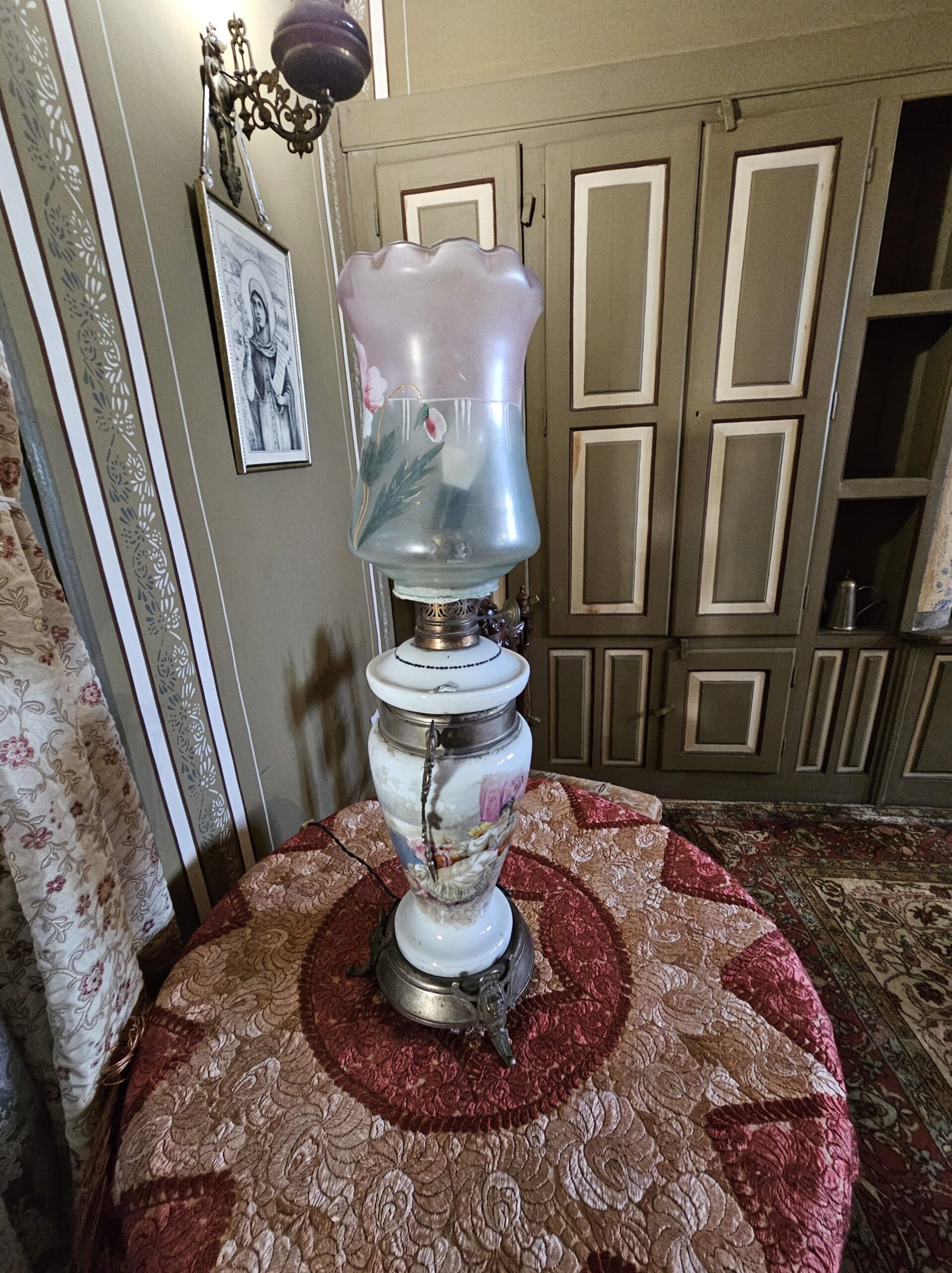 Η κατοικία είναι γεμάτη με εξαιρετικά έπιπλα εποχής. Οι τοίχοι είναι πλούσια διακοσμημένοι με διαφορετικά φυτικά και γεωμετρικά μοτίβα.