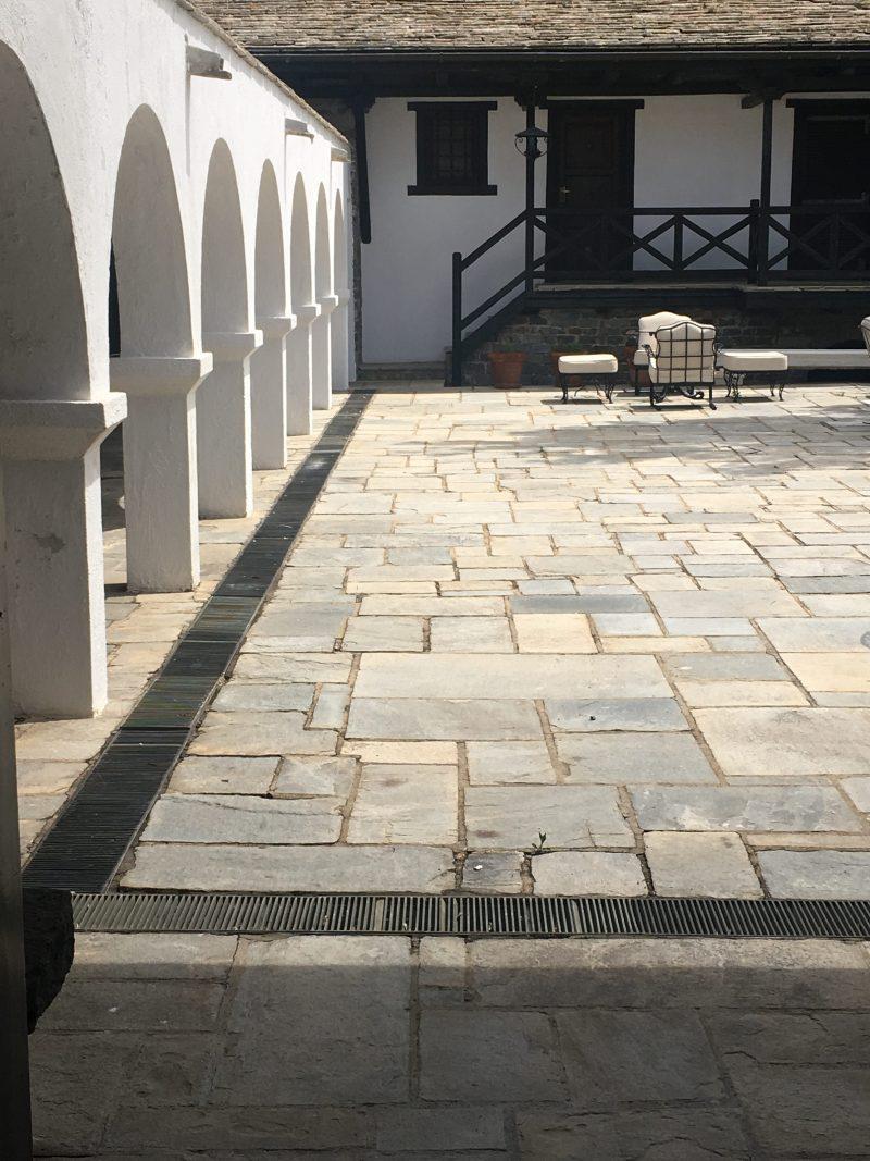 Ο Γιάννης Καρράς στο προαύλιο της βίλας του
