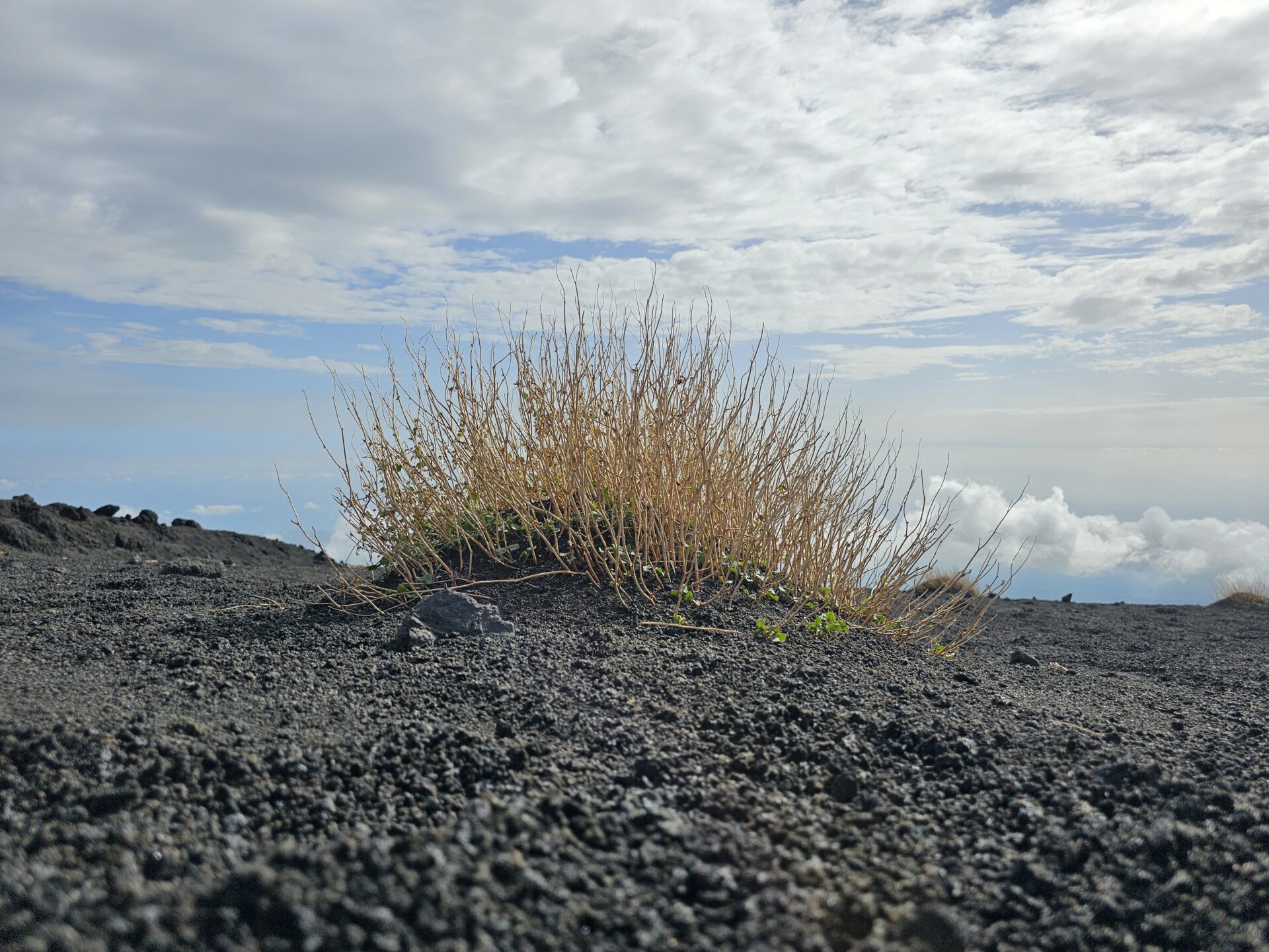 Σπανίως συναντάς βλάστηση, και αυτή είναι κάτι χαμηλά φυτά που προσπαθούν να επιβιώσουν μέσα στα πετρώματα της λάβας. Σιγά σιγά μπαίνεις στην πολύ ιδιαίτερη αίσθηση της περιοχής και του ηφαιστείου.