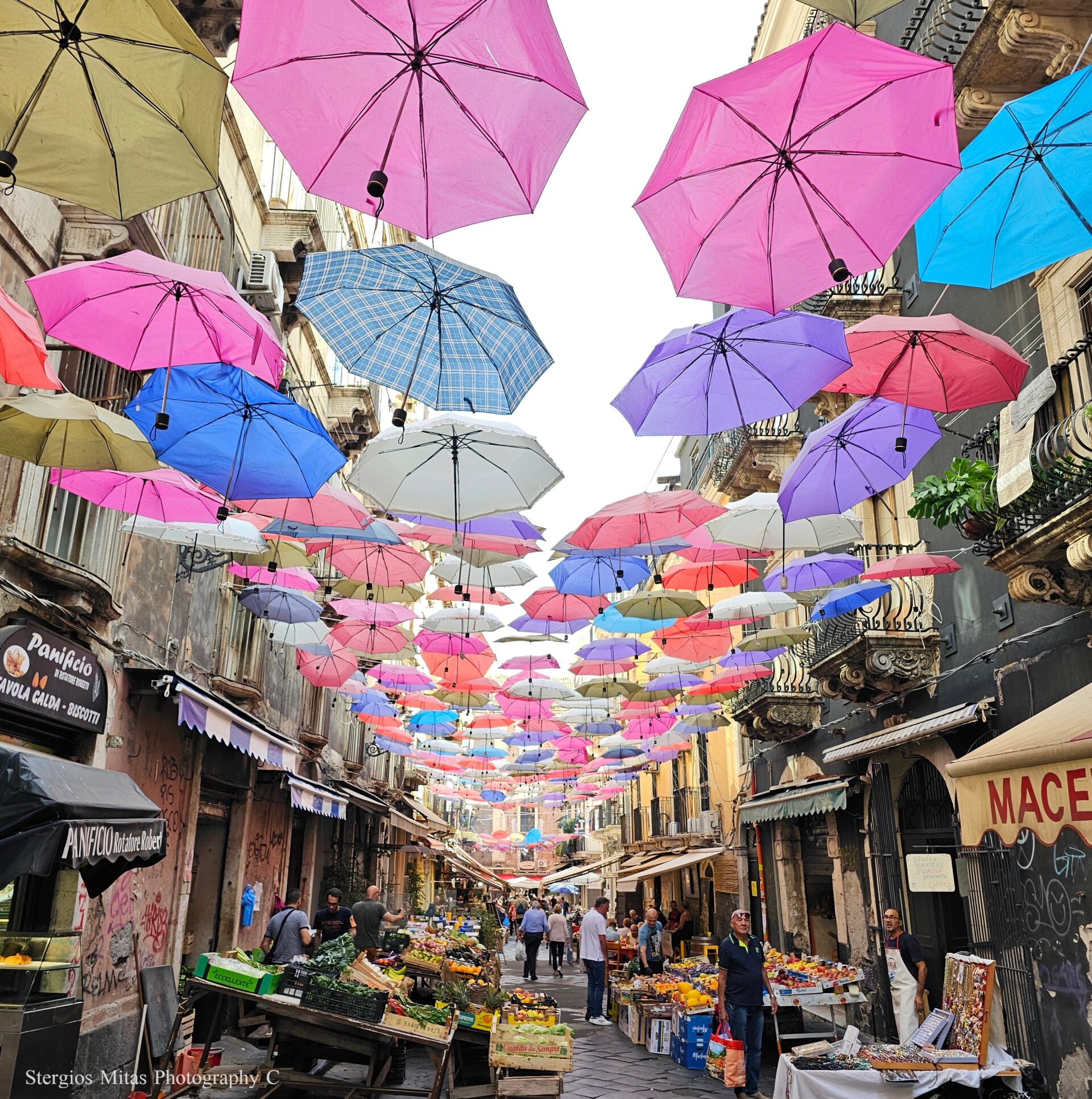 Κατάνια. Η πόλη ζει κάτω από την σκιά της Αίτνας. Ιδρύθηκε τον 8ο πχ αιώνα από Έλληνες από την Χαλκίδα. Είναι η δεύτερη μεγαλύτερη πόλη της Σικελίας μετά το Παλέρμο. Αρκετές ηφαιστειακές εκρήξεις απείλησαν την πόλη με την πιο καταστροφική του 1669 όταν η λάβα μπήκε στην δυτική πλευρά της πόλης και την κατέστρεψε. Ξαναχτίστηκε σε στυλ μπαρόκ με πέτρινα κτίρια από λάβα. Το κέντρο της είναι εύκολο να το περπατήσεις και ο κεντρικός δρόμος λέγεται φυσικά “οδός Αίτνας”. Στην κεντρική πλατεία Duomo είναι η μεγάλη εκκλησία της Αγίας Αγκάθας, που είναι ο καθεδρικός ναός της πόλης. Εδώ είναι και το σύμβολο της πόλης, το σιντριβάνι του Ελέφαντα, φτιαγμένο από μαύρη λάβα και Ασιατική αισθητική. Εκεί κοντά είναι και η υπαίθρια αγορά φρούτων , λαχανικών και ψαρικών. Πάνω από την δρόμο της αγοράς κρέμονται χρωματιστές ομπρέλες που δίνουν μια ιδιαίτερη ατμόσφαιρα στην υπαίθρια αγορά. Αν περπατήσεις στην γύρω περιοχή μπορείς να δεις τα μεγάλα μπαρόκ κτίρια να είναι σε μια εγκατάλειψη.