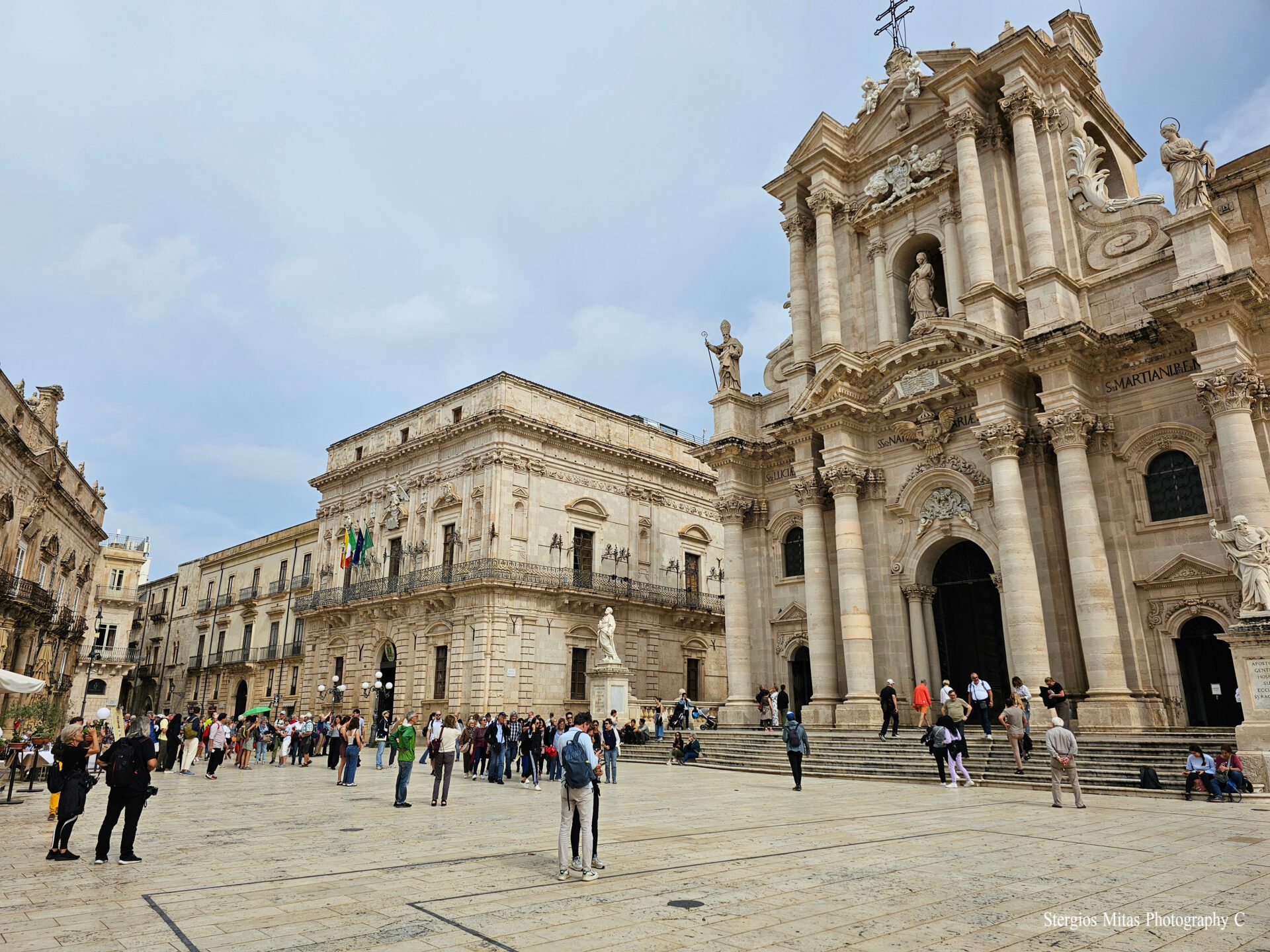 Συρακούσες. Ιδρύθηκε το 734πχ από Κορίνθιους. Ήταν η μεγαλύτερη Ελληνική αποικία της Σικελίας και ήταν εξαιρετικά οχυρωμένη με τεράστια ναυτική δύναμη για την εποχή. Φθάνοντας στις Συρακούσες πας στο νησάκι Ορτύγια έναν από τους πιο όμορφους προορισμούς της Σικελίας. Περπατώντας σήμερα στα δρομάκια του νησιού θα συναντήσεις τον κατεστραμμένο ναό του Απόλλωνα και τον ναό του Ολυμπίου Διός. Δεν είμαι φανατικός με τις εκκλησίες αλλά σε κάθε πόλη και χωριό στην Σικελία υπάρχει μία πλατεία Duomo. Στις Συρακούσες όμως στην πλατεία Duomo μπορείς να δεις κάτι ξεχωριστό.