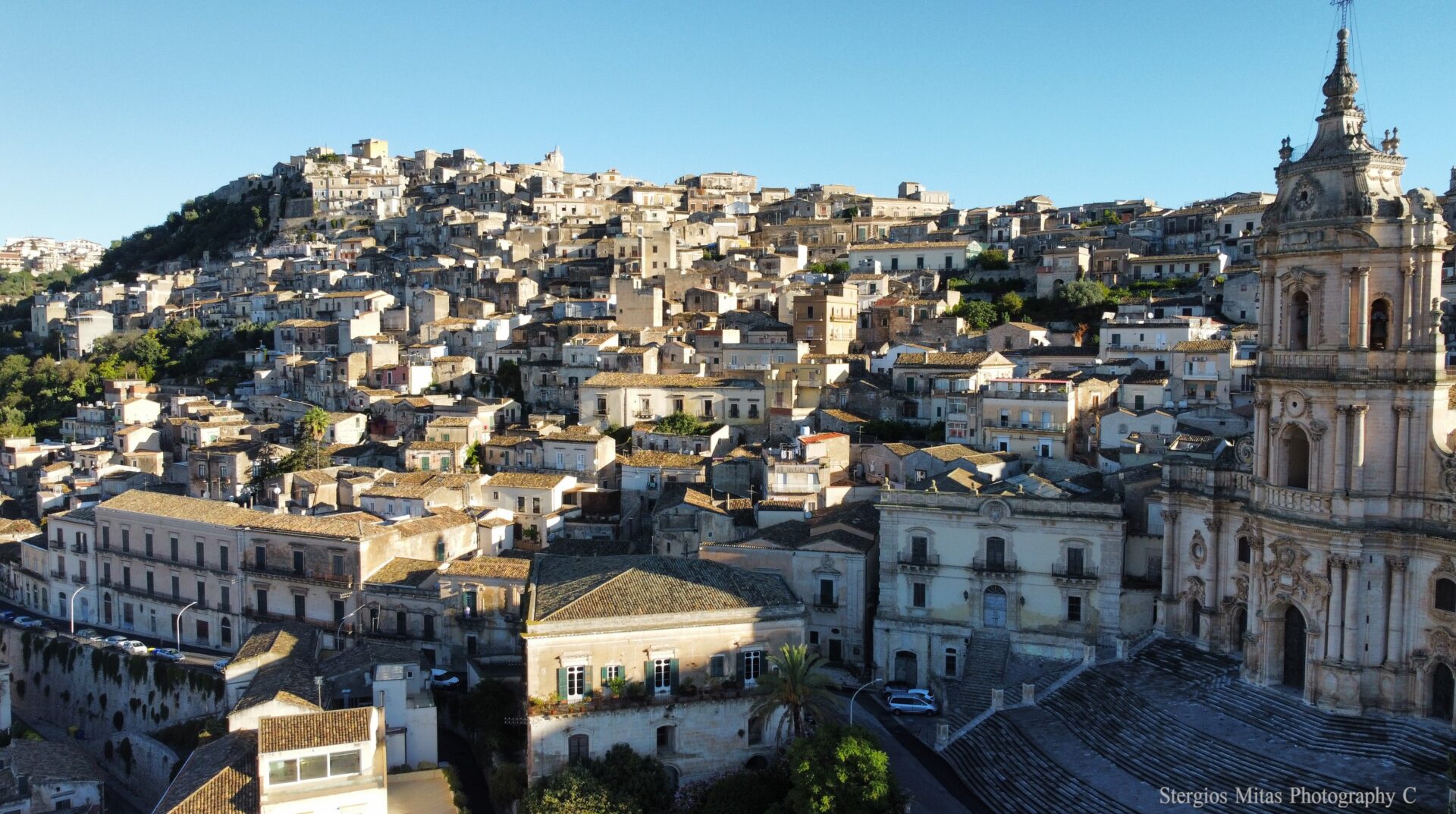 Από την μικρή ταράτσα του σπιτιού μπορούσαμε να βλέπουμε τις στέγες με τα κεραμίδια των σπιτιών της Modica κολλημένες η μια δίπλα στην άλλη. Το πρωί οι καμπάνες του San Giorgio ήταν ένα ευχάριστο ξύπνημα στην μεσαιωνική Σικελία. Η εκκλησία έχει 250 σκαλοπάτια για να ανεβείς και είναι ίσως η πιο εντυπωσιακή μπαρόκ εκκλησία της Σικελίας. Είναι στην λίστα των μνημείων της Unesco. Στο δάπεδο της έχει ένα ηλιακό ρολόι και λίγο πιο ψηλά ένα μνημειώδες “όργανο” με 3000 αυλούς.