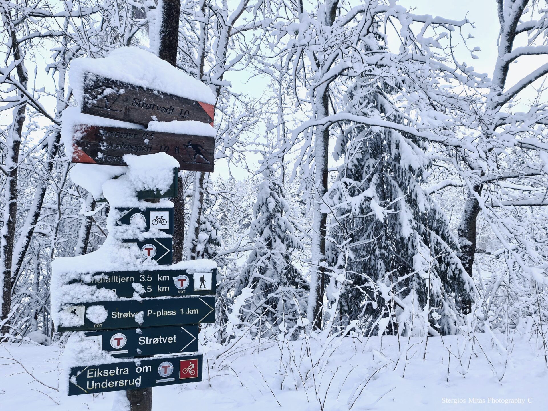 Θα βγεις να χαρείς το χιονισμένο περιβάλλον. Τα μονοπάτια στο δάσος κοντά στις κατοικημένες περιοχές, περνάει και τα “στρώνει” ειδικό μηχάνημα, έτσι μπορείς να περπατήσεις άνετα πάνω στο χιόνι χωρίς να βουλιάζεις. Αν θες να βυθιστείς και λίγο στο φρέσκο χιόνι, θα πας στο απάτητο, αλλά εδώ θέλει προσοχή γιατί δεν φαίνονται οι λακκούβες και μπορεί να βουλιάξεις μέσα στο χιόνι και δύσκολα θα βγεις. Τα μονοπάτια στα βουνά έχουν εξαιρετική σήμανση από την Νορβηγική ένωση πεζοπορίας και είναι πολύ δύσκολο να χαθείς. Ξύλινες επιγραφές σε κάθε διασταύρωση σε πληροφορούν για τις διαδρομές, την απόσταση και τον μέσο όρο χρονικής διάρκειας που θα χρειαστείς για να πας. Όλα αυτά σου δίνουν μια αίσθηση ασφάλειας και δεν σε αποτρέπουν από εξορμήσεις στα χιονισμένα βουνά.
