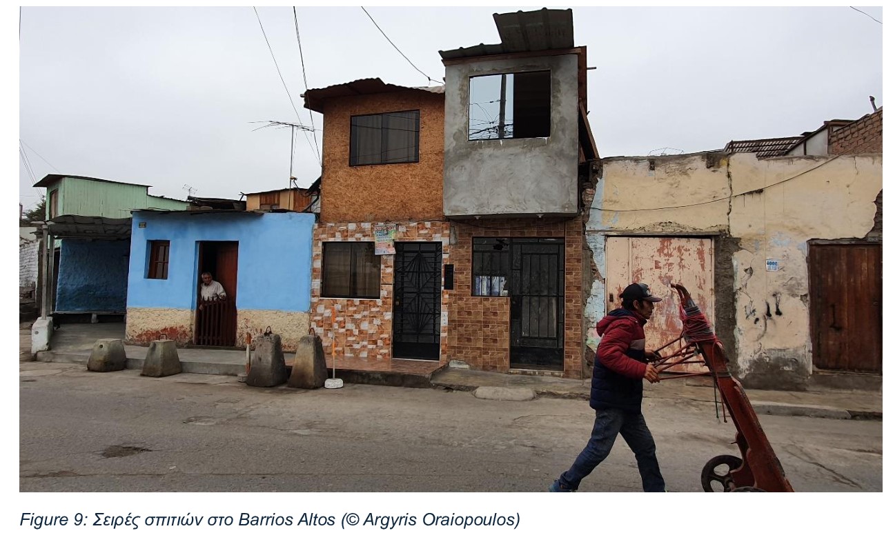 Το Barrios Altos, είναι μια από τις παλαιότερες γειτονιές που βρίσκεται κοντά στο ιστορικό κέντρο της Λίμα. Εκεί ο φόβος της έξωσης είναι καθημερινή πραγματικότητα. Η αυξανόμενη αξία της γης, που βρίσκεται σε γειτνίαση με το προεδρικό μέγαρο, οδηγεί σε παράνομες πρακτικές όπως η εμπορία γης, που αναγκάζουν τον εκτοπισμό των κοινοτήτων που κατοικούν εκεί για δεκαετίες. Μπορεί κανείς να δει τους νέους χώρους στάθμευσης αυτοκινήτων να ξεπροβάλλουν κάθε τόσο, καθώς και τους χώρους των αποθηκών που καμουφλάρονται πίσω από τις όμορφες προσόψεις των αποικιακών κτιρίων.
