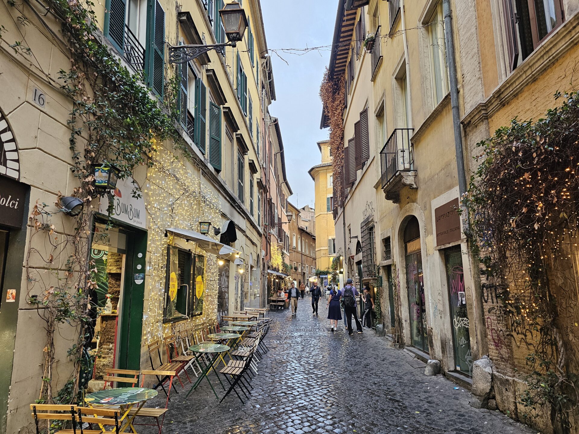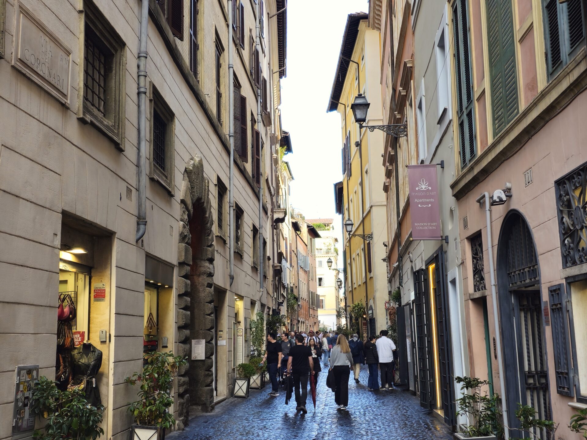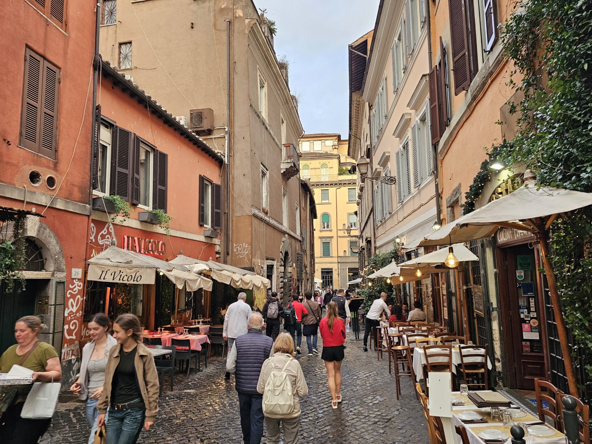 Τα δρομάκια αυτά είναι στενά γιατί έτσι γεννήθηκε η Ρώμη. Μια πόλη που μεγάλωσε χωρίς αυστηρό σχέδιο, μέσα σε αιώνες κατοίκησης. Τα σπίτια υψώνονταν γύρω από τις αγορές και τις εκκλησίες, οι δρόμοι ακολουθούσαν τα ίχνη των παλιών ρωμαϊκών δρόμων, ή τις φυσικές καμπύλες του εδάφους. Οι προσόψεις των σπιτιών είναι βαμμένες σε χρώματα ώχρας και κεραμιδί, κάποιες ξεφτισμένες από τον χρόνο.