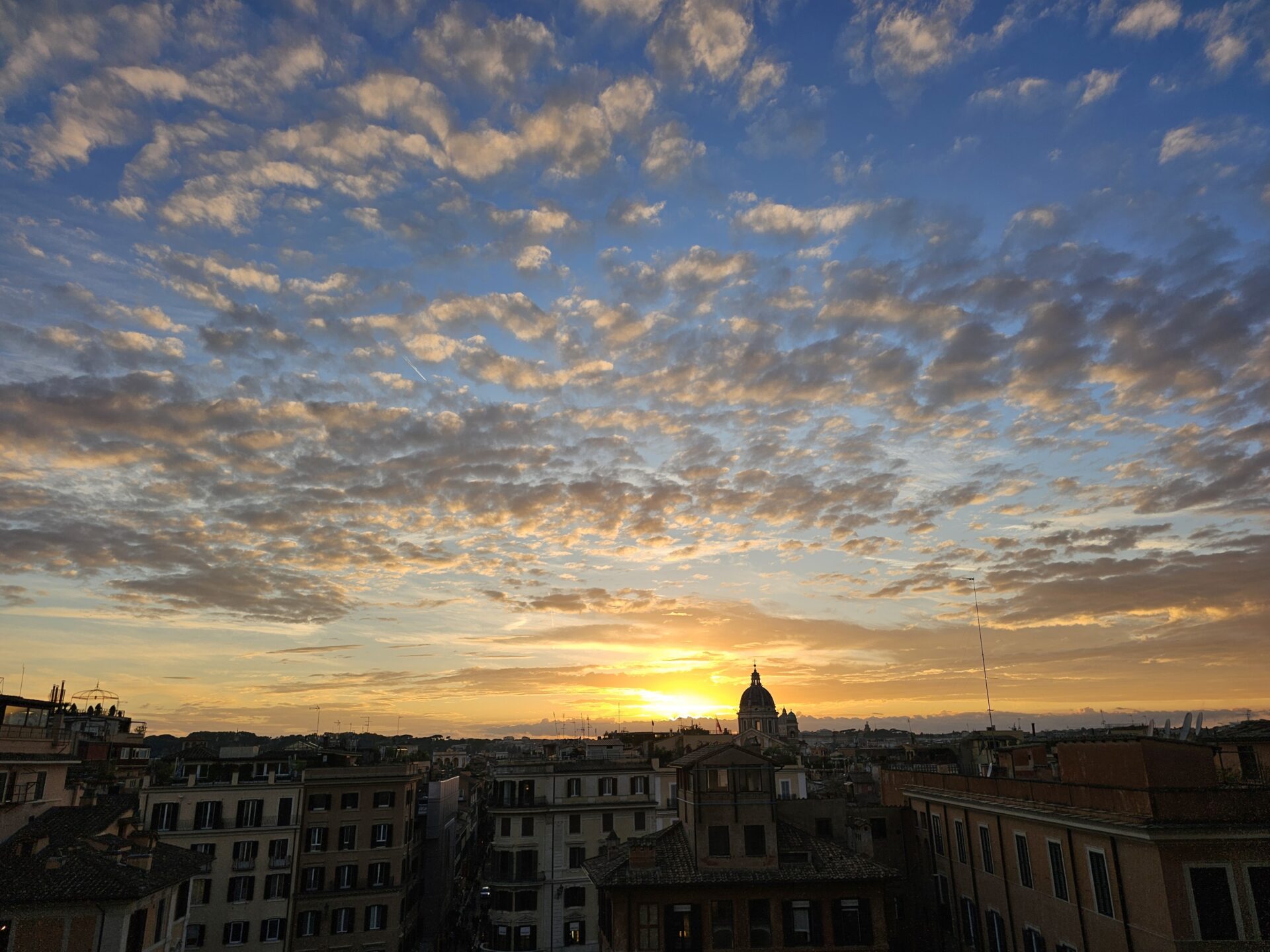Στην κορυφή των Spanish Steps στέκεται η εκκλησία Trinità dei Monti, με πανοραμική θέα στην γύρω περιοχή. Από εδώ πάνω η Ρώμη απλώνεται μπροστά σου, τα κεραμίδια, οι θόλοι, τα στενά, τα καμπαναριά, μια εικόνα που αξίζει ίσως περισσότερο αυτή την μοναδική στιγμή που ο ήλιος πλαγιάζει πάνω από την Ρώμη.