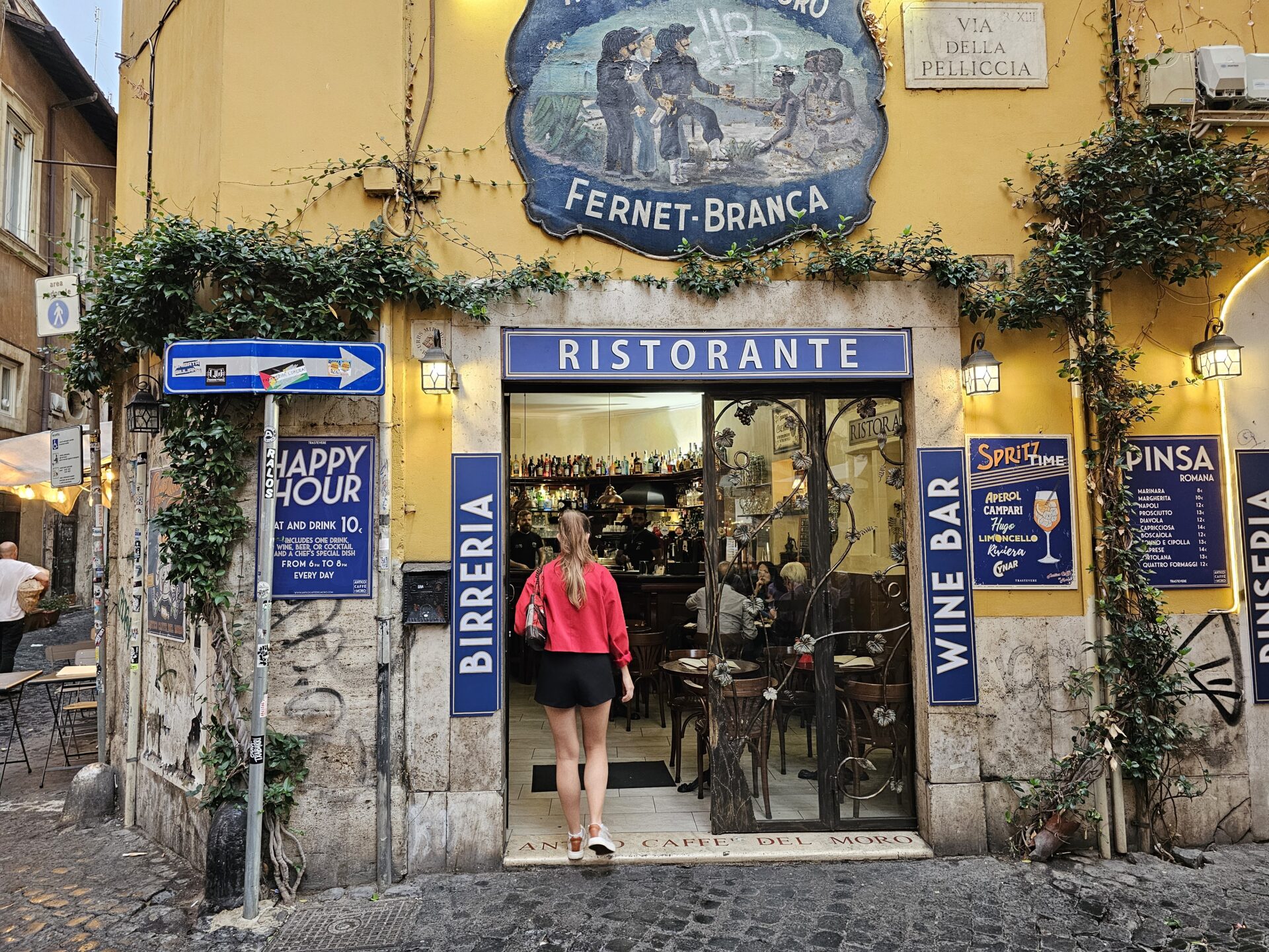 Εδώ μέσα στα στενά δρομάκια η πόλη αλλάζει ρυθμό, ο ήχος των αυτοκινήτων σβήνει, τα βήματα γίνονται πιο αργά και μια απρόσμενη γαλήνη απλώνεται ανάμεσα στους τοίχους, αν και είσαι στο κέντρο της πόλης. Περπατώντας εδώ ανακαλύπτεις και βιώνεις ένα κομμάτι της αυθεντικής Ρώμης που κρατάει ακόμη. Μην βιάζεσαι και μην κοιτάς μόνο κάτω, η πόλη δεν είναι μόνο τα σπίτια και τα δρομάκια, πίσω από τα παράθυρα είναι οι άνθρωποι που ζούνε και χαίρονται αυτή την πόλη και μπορείς να νοιώσεις την ενέργεια τους.