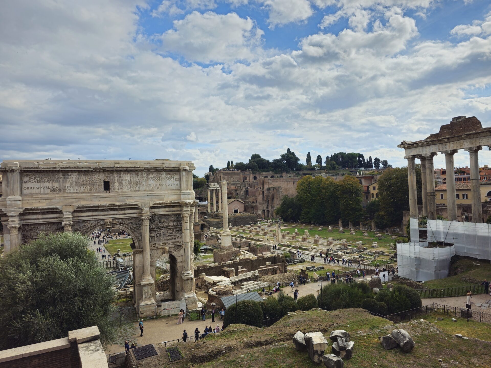 Εδώ κάποτε ήταν η καρδιά της ρωμαϊκής ζωής. Από το Κολοσσαίο συνεχίζεις το περπάτημα σου και σε λίγο είσαι στο Ρωμαϊκό Φόρουμ, μια κοιλάδα ανάμεσα στους λόφους Καπιτωλίνο και Παλατίνο.