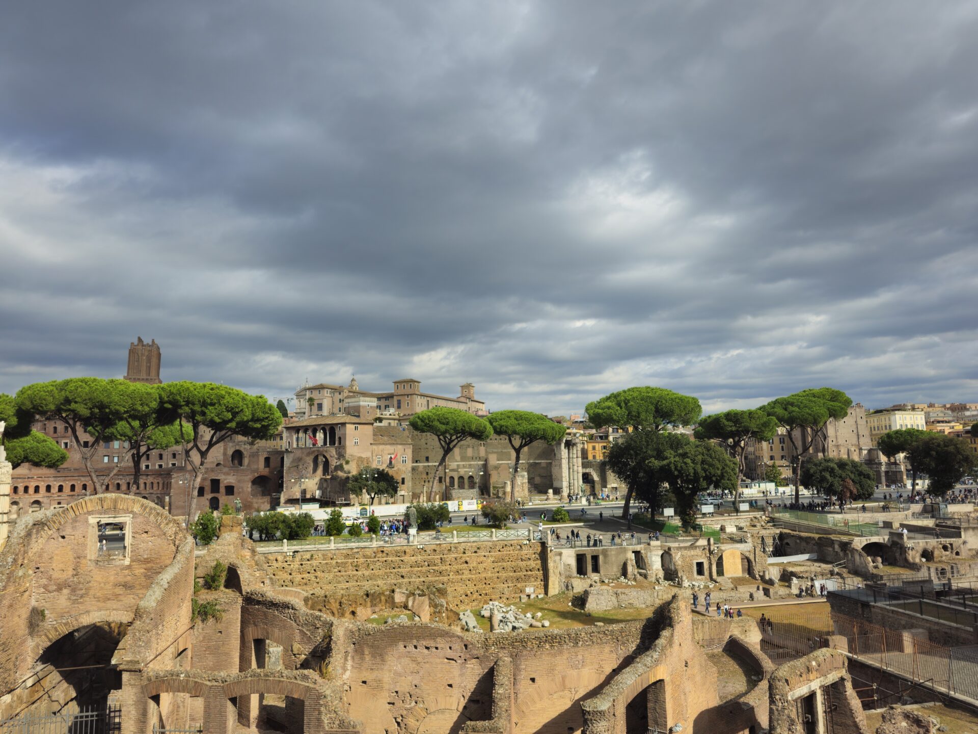 Εδώ στην φωτογραφία βλέπεις μια εικόνα που χαρακτηρίζει την μοναδικότητα της Ρώμης. Στο πρώτο επίπεδο ένα μνημείο, στο δεύτερο ένα πανέμορφο πεύκο και στο τρίτο τα κτίρια με τα γήινα χρώματα. Η Ρώμη δεν θα ήταν ίδια αν δεν υπήρχαν αυτές οι κουκουναριές με το υπέροχο χρώμα και σχήμα.